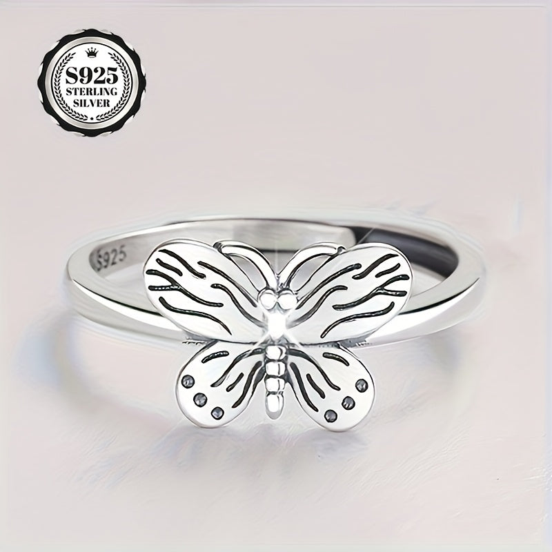 This elegant open ring features a delicate butterfly design, crafted from S925 sterling silver. Perfect for various occasions like outings, parties, weddings, vacation, and graduations.