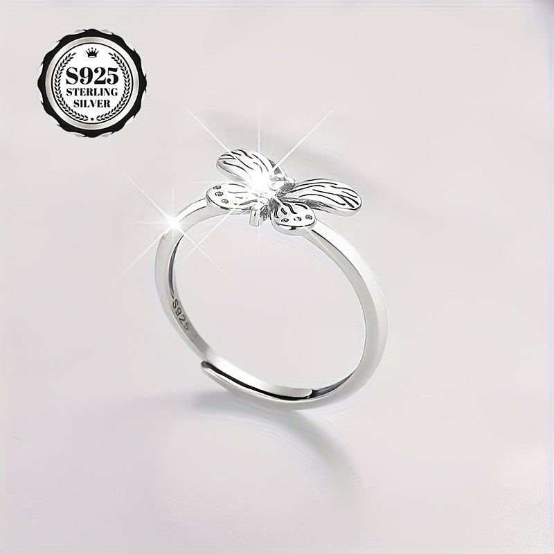 Women's S925 Butterfly Adjustable Ring for Daily Wear