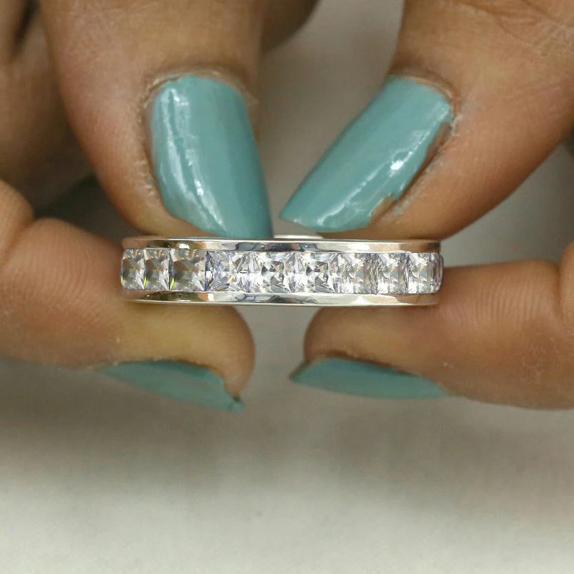 This classic stainless steel ring featuring synthetic zirconia inlay is perfect for daily wear and wedding engagements. The high-quality materials and timeless design make it an ideal accessory.