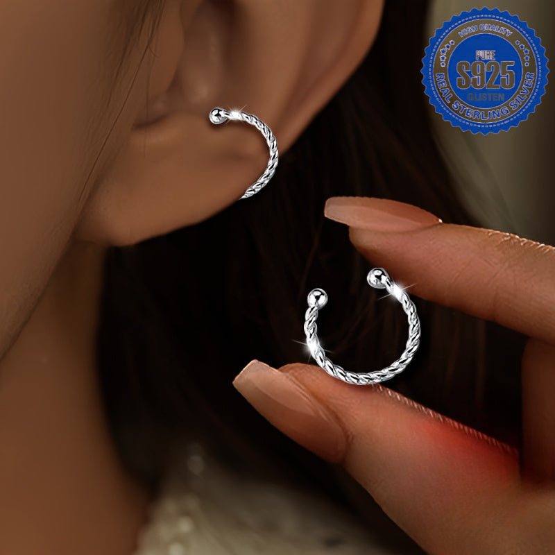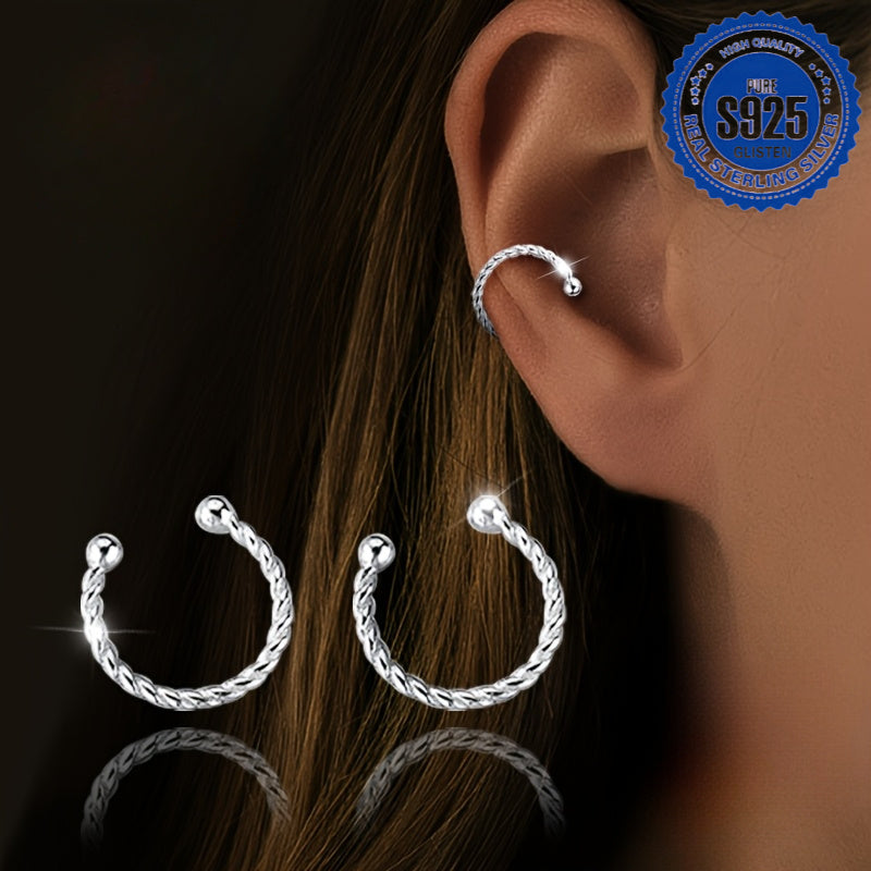 Women'S Twisted Silver Ear Cuffs Hypoallergenic S925