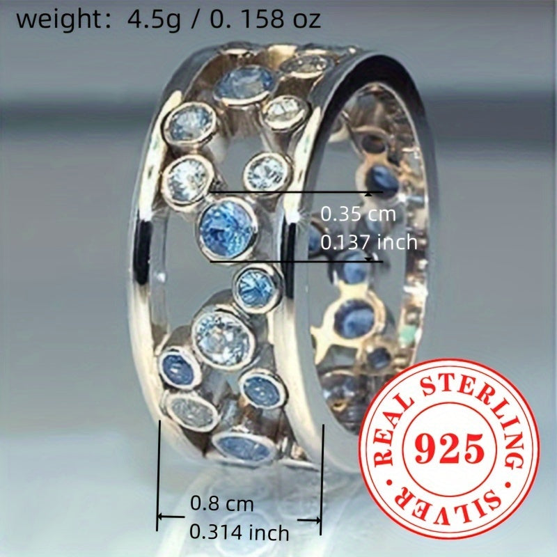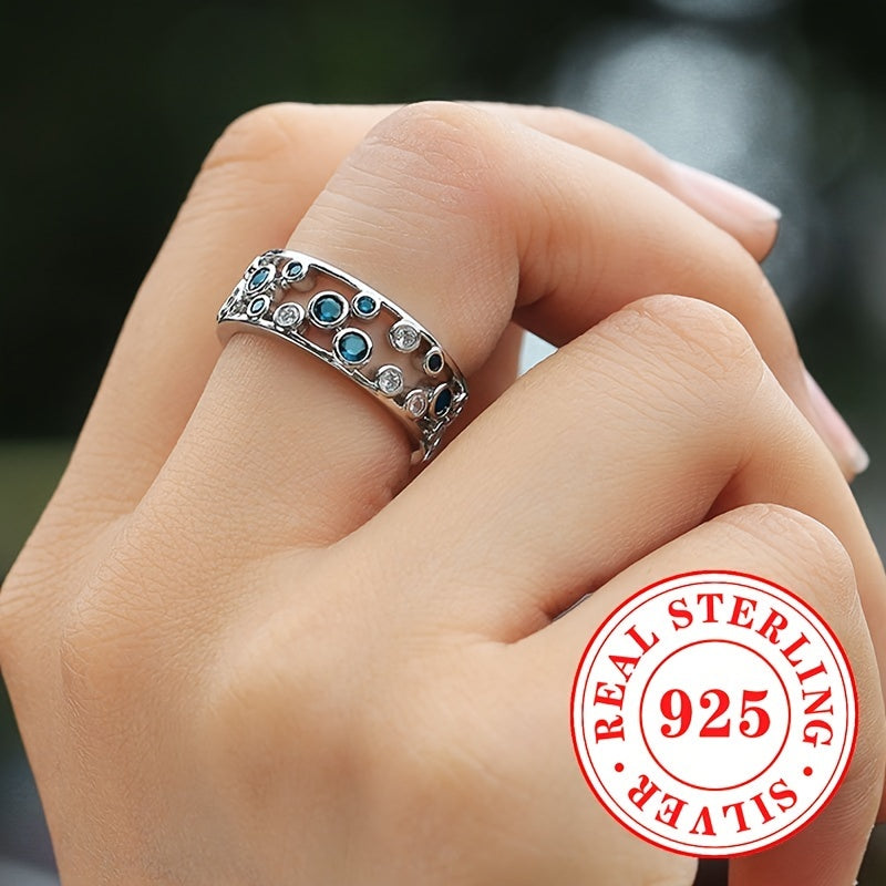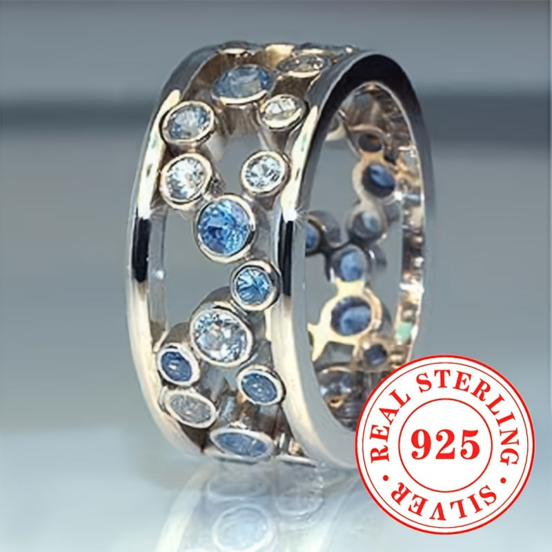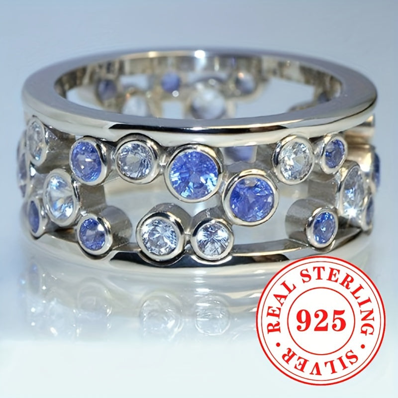 Elegant wide face ring made of pure silver with synthetic zirconia, perfect for daily wear or parties. Ideal as a high-end gift for a special woman.