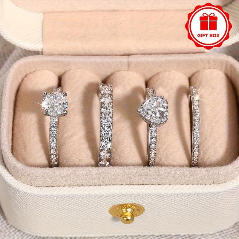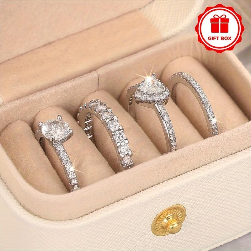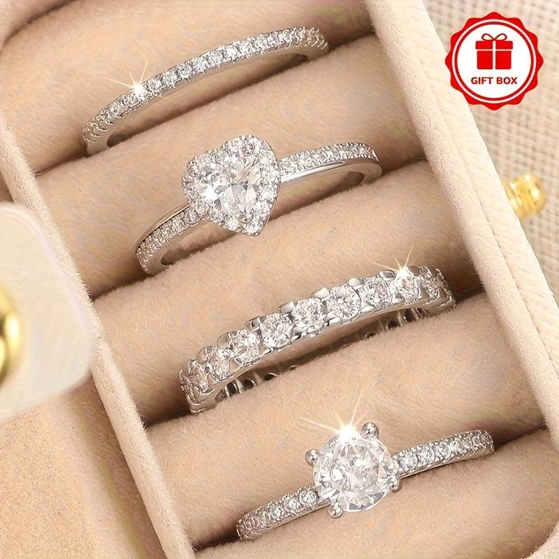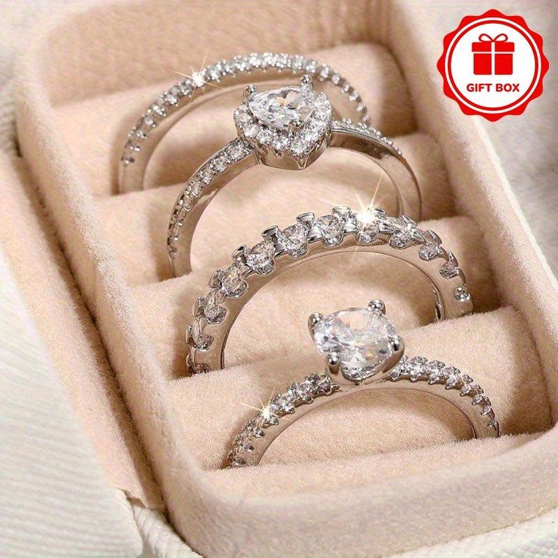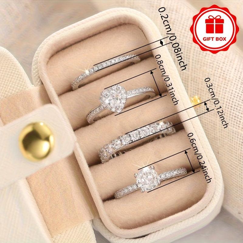 This 4-piece jewelry set features inlaid synthetic zirconia in a heart proposal ring design, perfect for engagement or wedding. An eternal symbol of love that makes a great gift for your girlfriend.