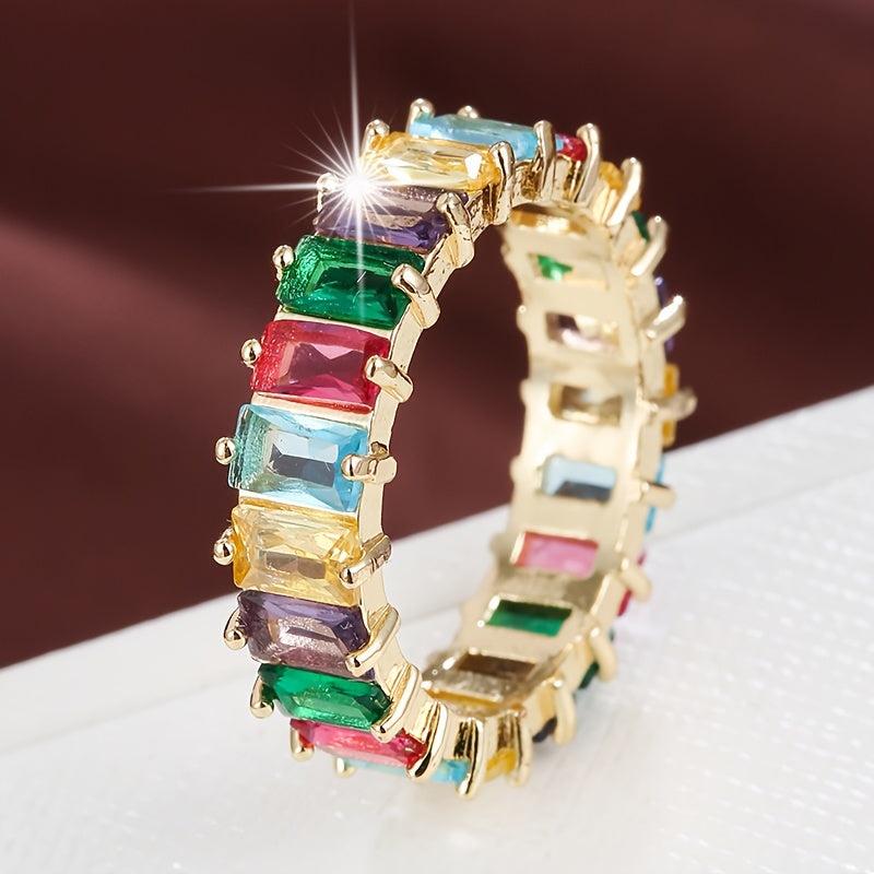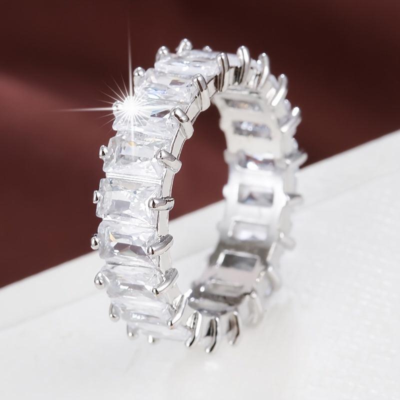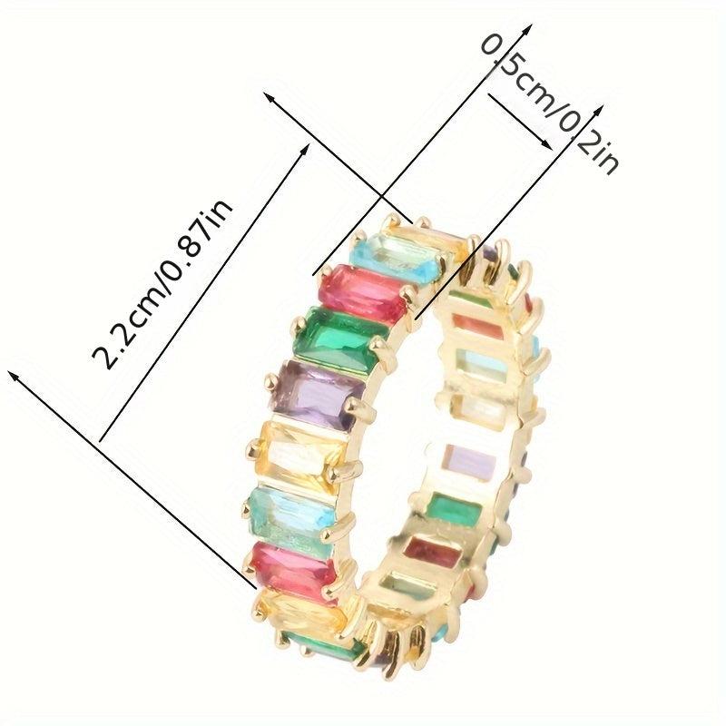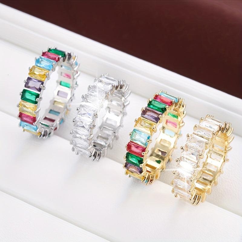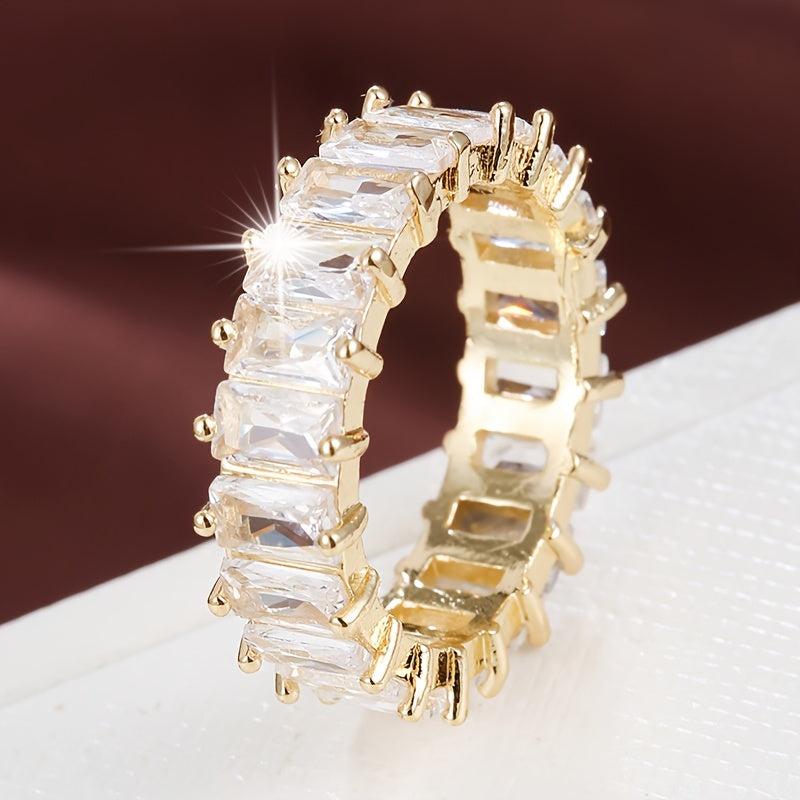 Elegant rectangular zirconia copper ring designed for women's fashion statement.