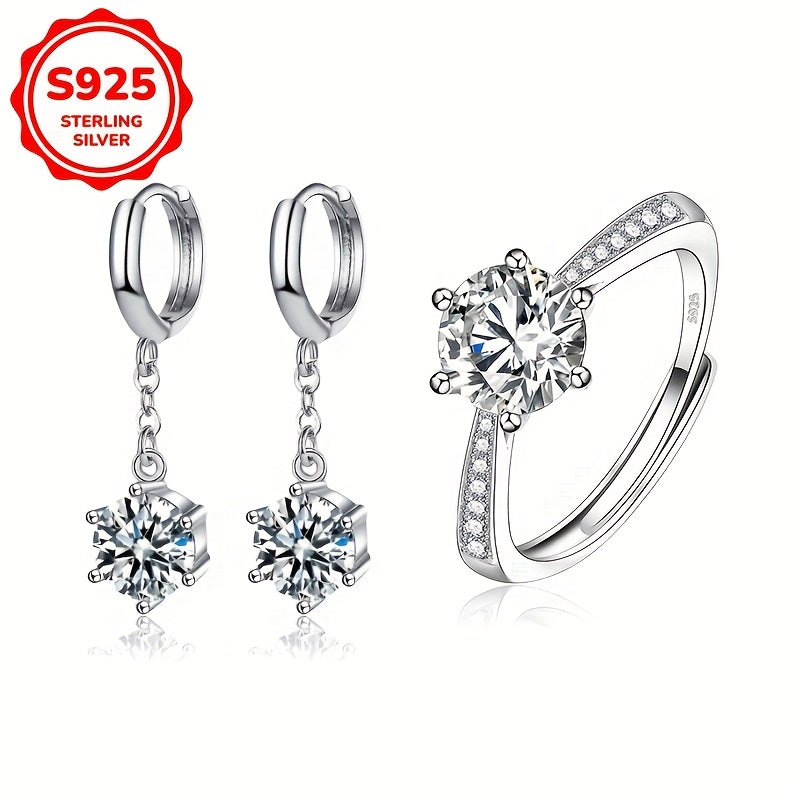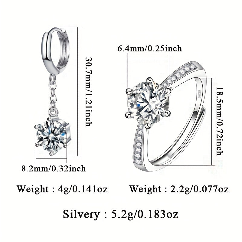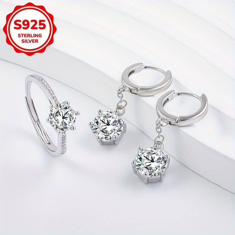 Elegant two-piece jewelry set with zirconia inlay for versatile daily wear. S925 silver ring and earrings for a touch of sparkle.