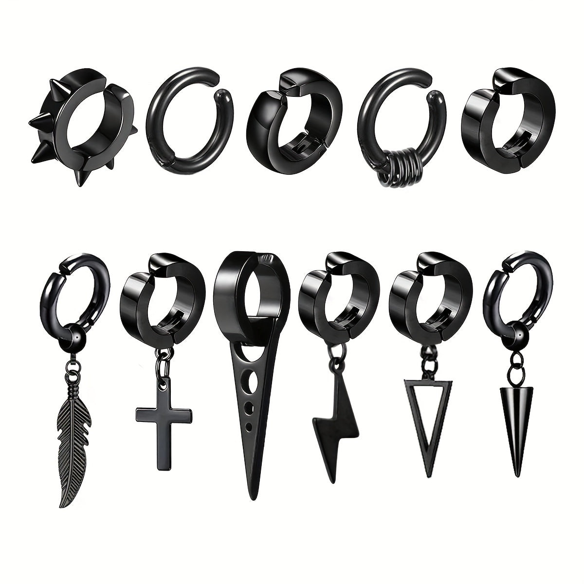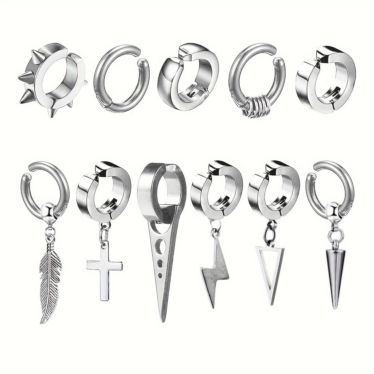 This set includes non-piercing ear clips with hip hop rivet and feather pendant designs. Perfect for adding a punk style to your look.