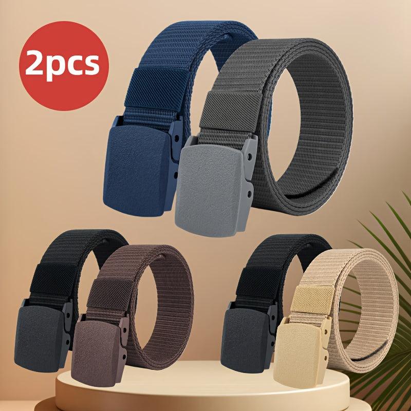 2 Pack Casual Belts with Nylon Webbing Quick Release Buckle