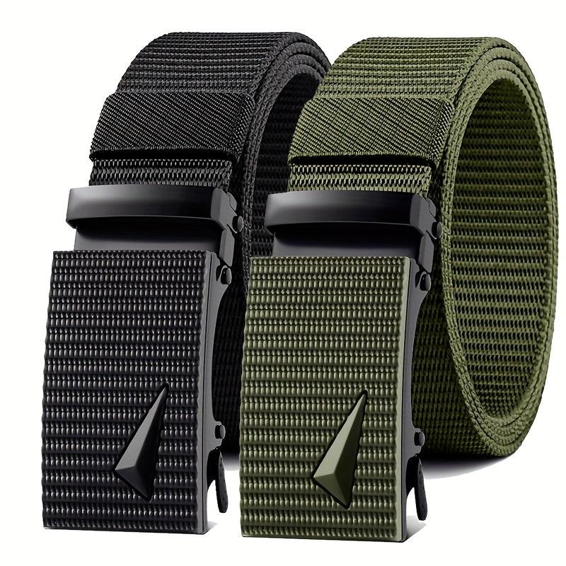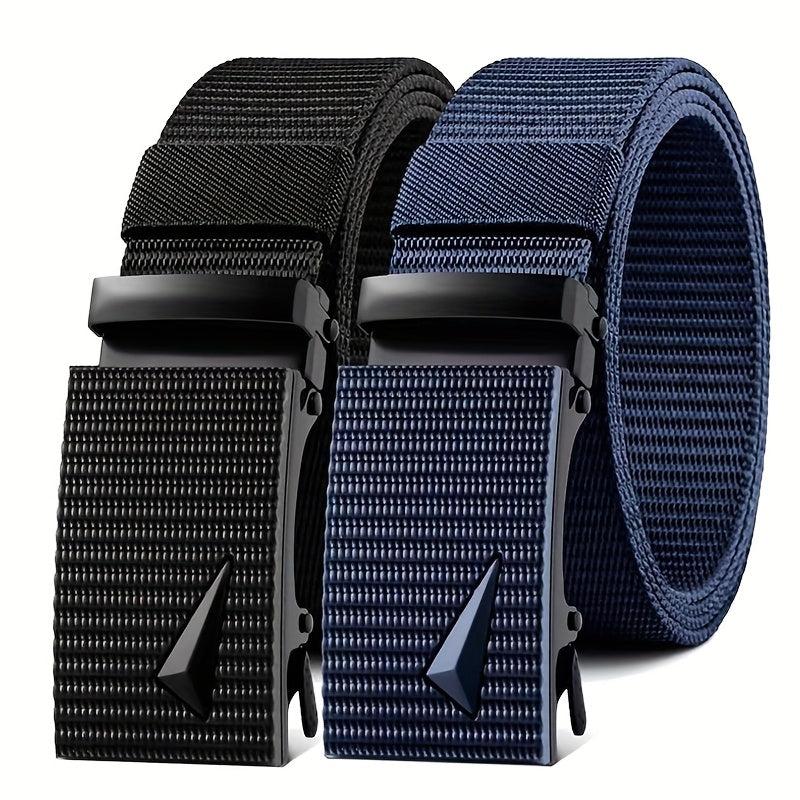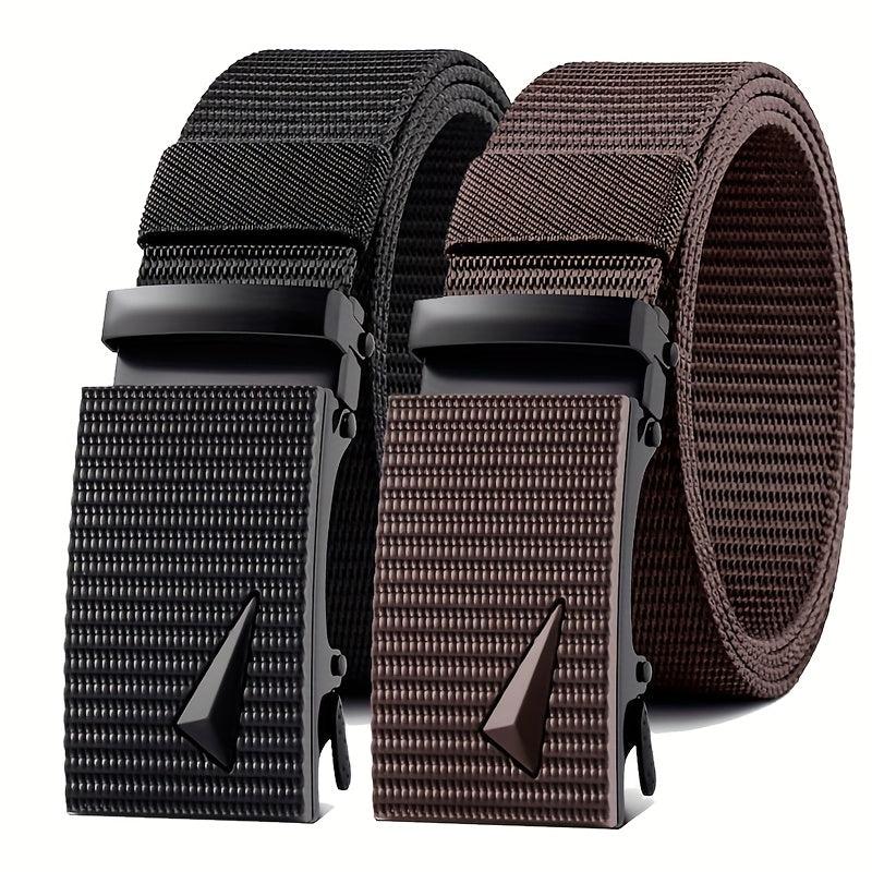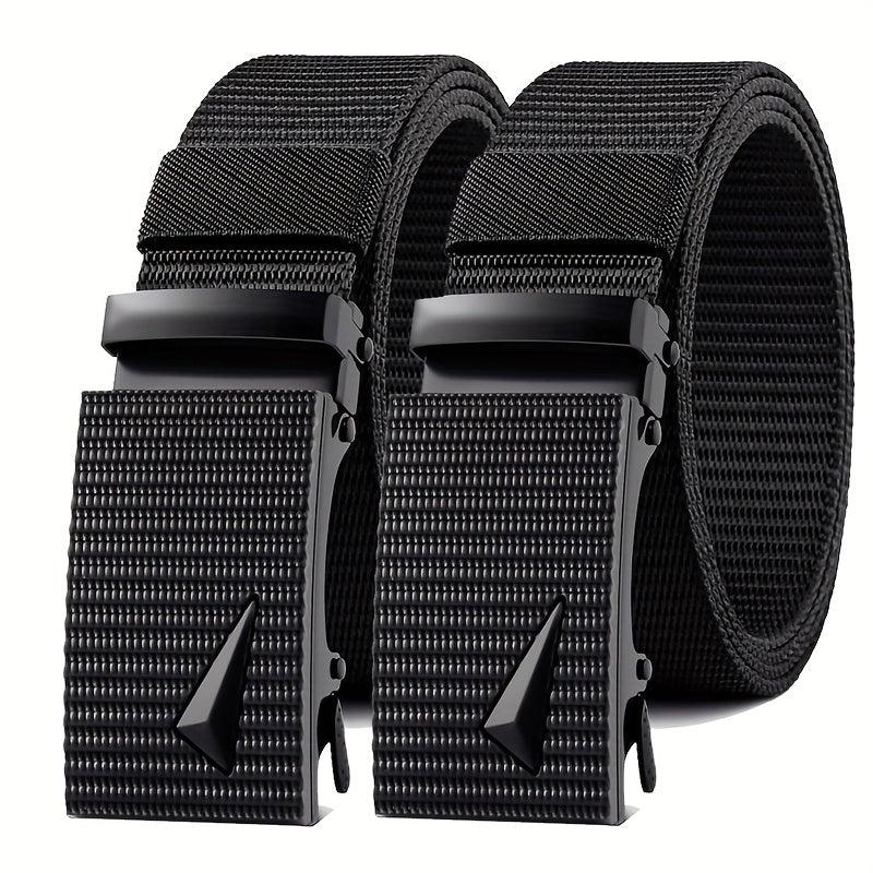 Stay fashionable with this 2-pack men's multifunctional belts set featuring a casual style with nylon woven straps and square ferroalloy buckles. Ideal for outdoor sports and leisure activities.