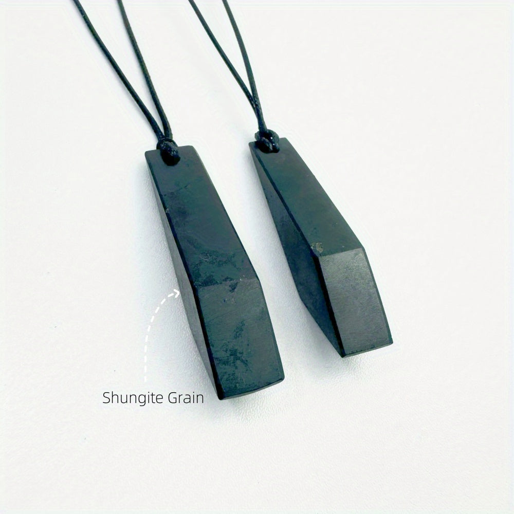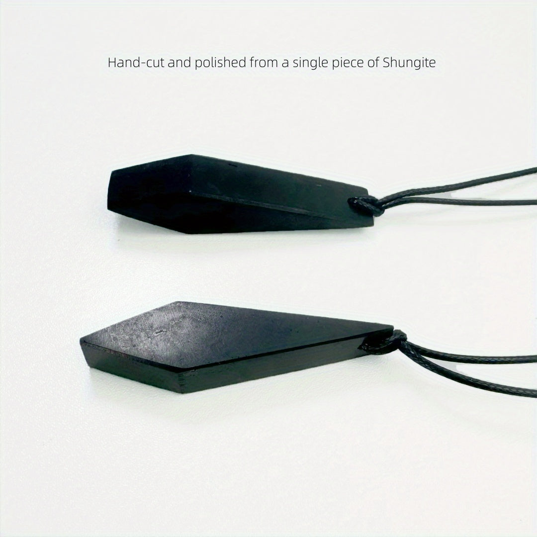 Enhance your well-being with this set of 2 Karelian Natural Shungite pendants. Each pendant features a three-dimensional rhombus design made from raw stone that has been hand-polished to perfection.