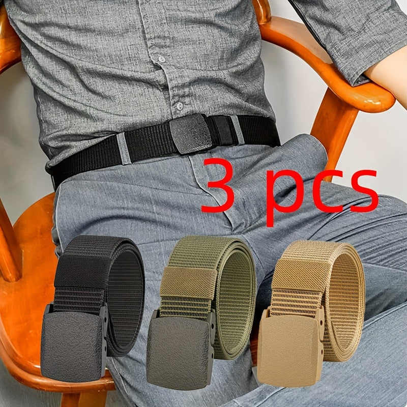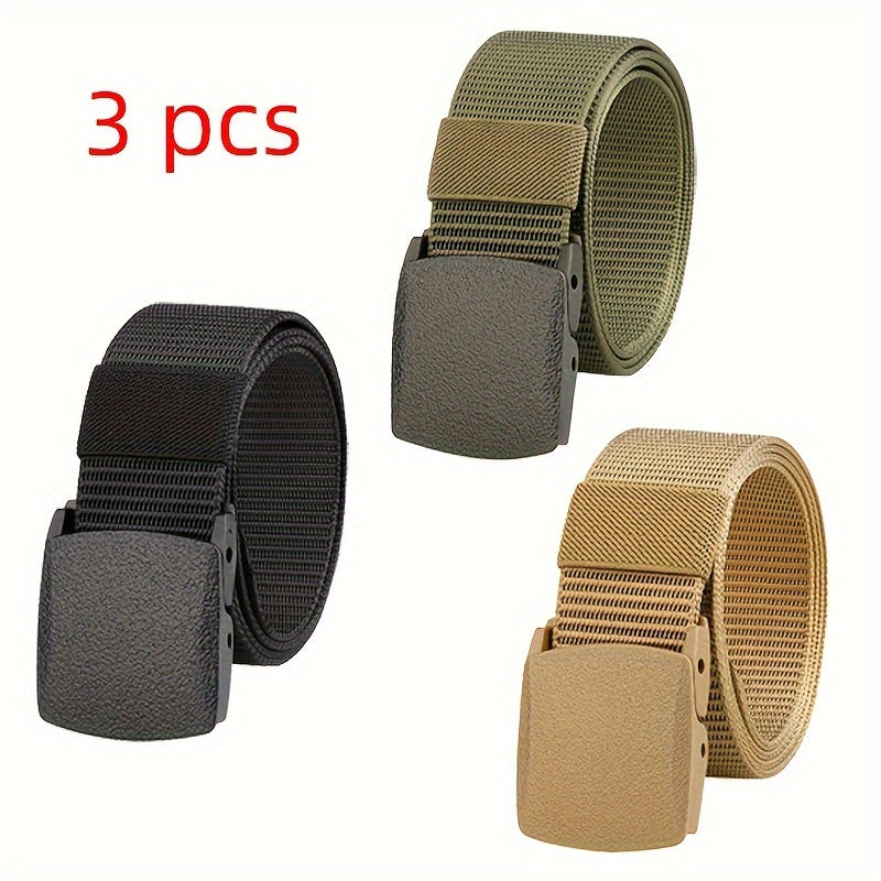 3pcs Men's Nylon Belt Quick Drying Auto Buckle Outdoor Casual Belt