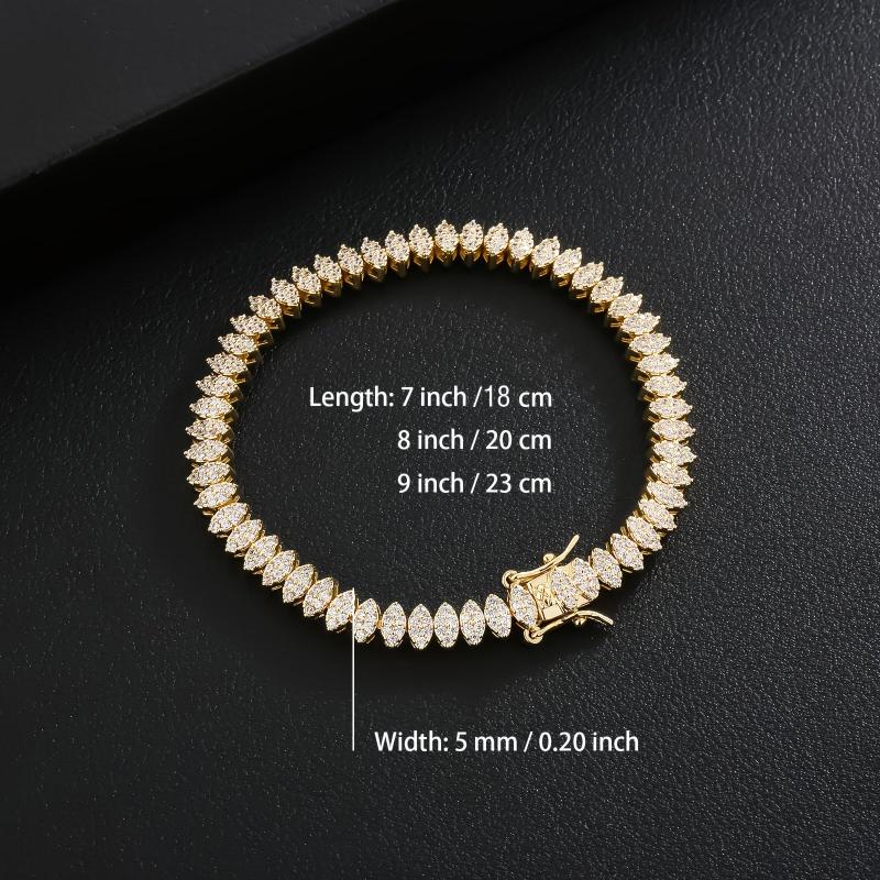 Add a touch of luxury and style to your outfit with this 5mm leaf-shaped zirconia bracelet. Perfect for parties or daily wear, this hip hop bracelet is sure to make a statement.