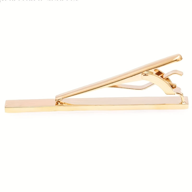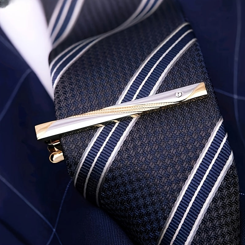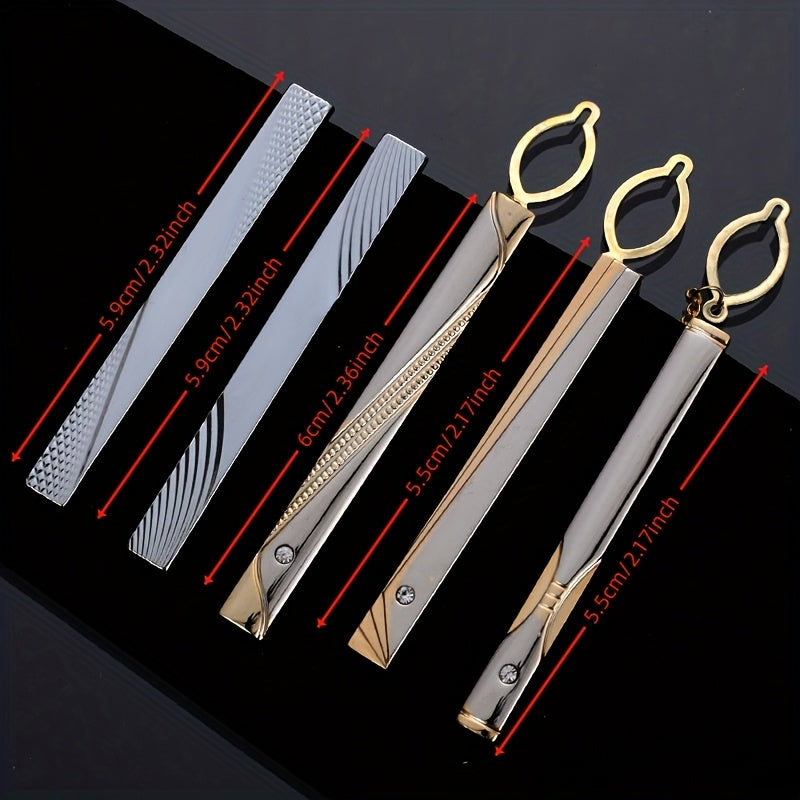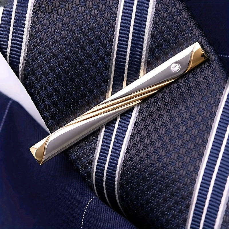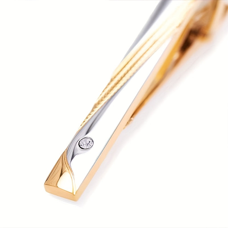 Enhance your outfit with this fashionable set of tie clips. Made with metal texture, these golden and silvery clips feature a two-tone geometric lines diamond style design.