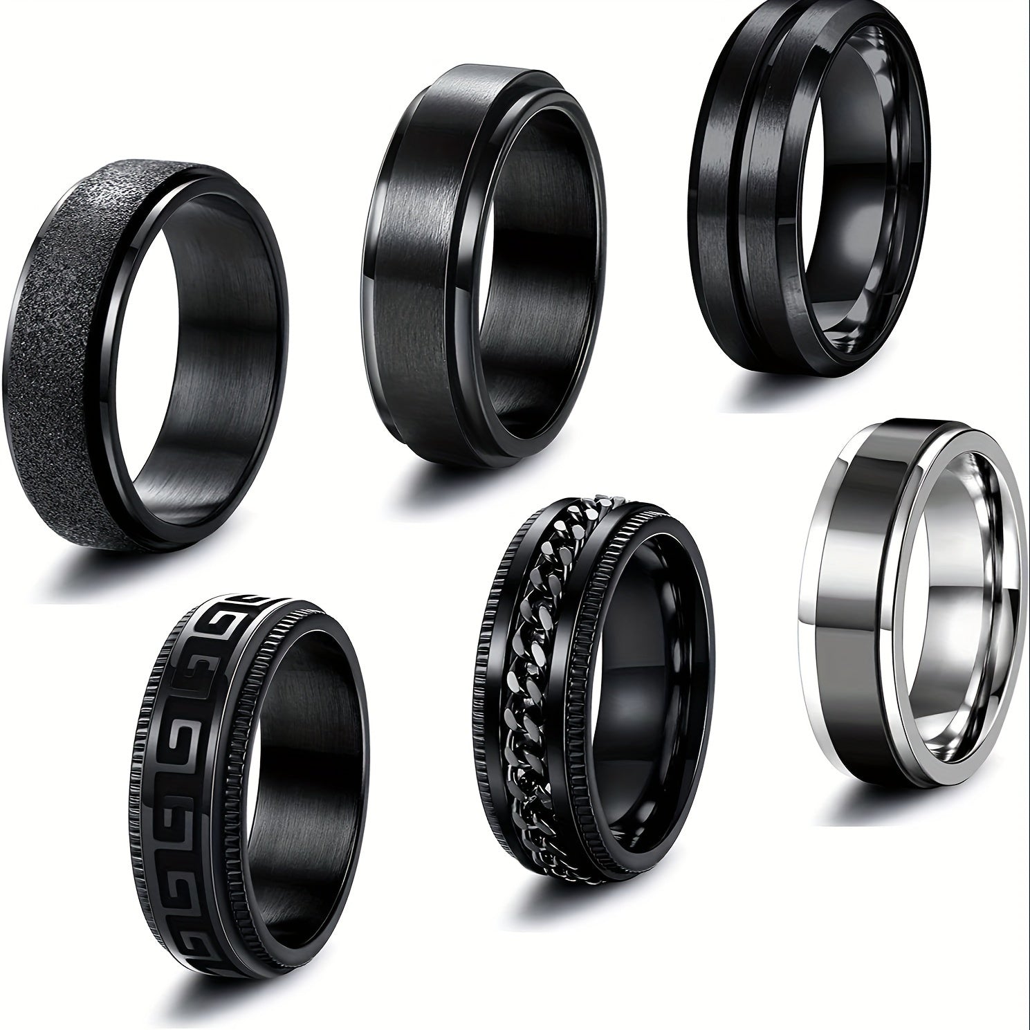 6 Piece Stainless Steel Fidget Rings for Anxiety Relief