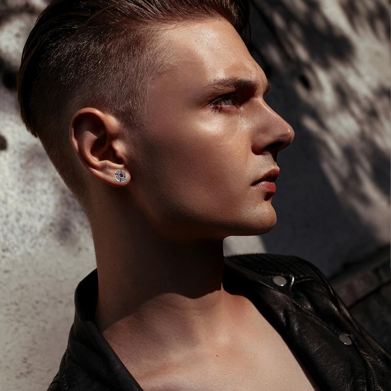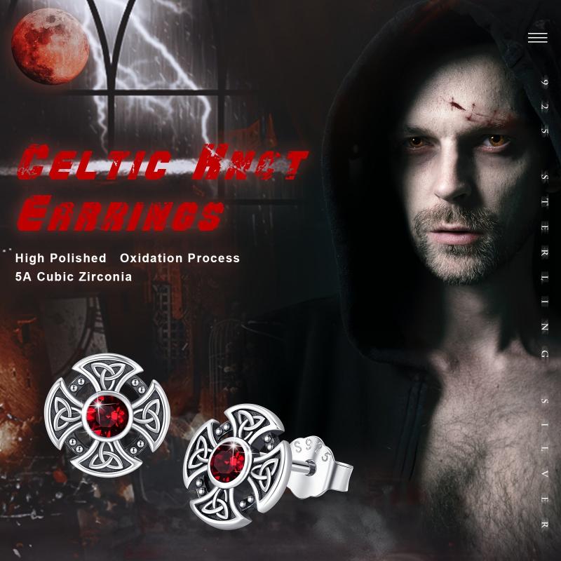 925 Silver Celtic Cross Stud Earrings with Red Zirconia for Men