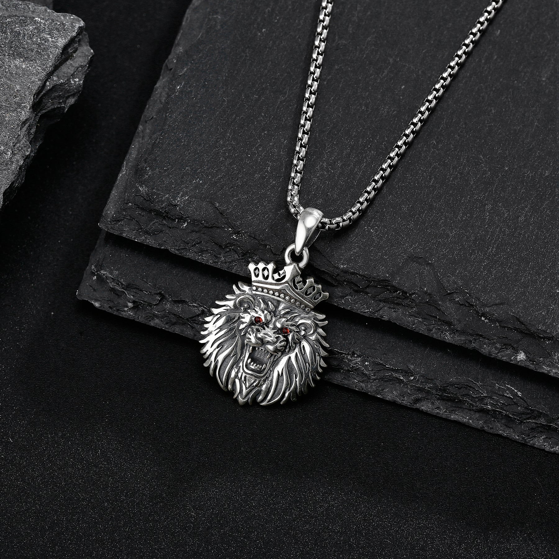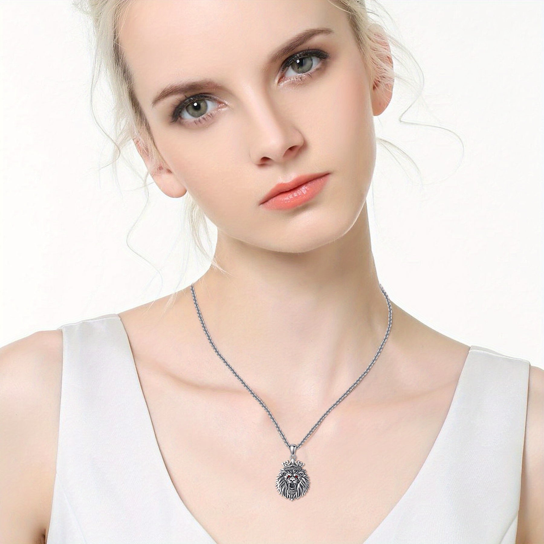 925 Silver Lion Head Necklace with Crown Pendant Men's and Women's Jewelry Gift