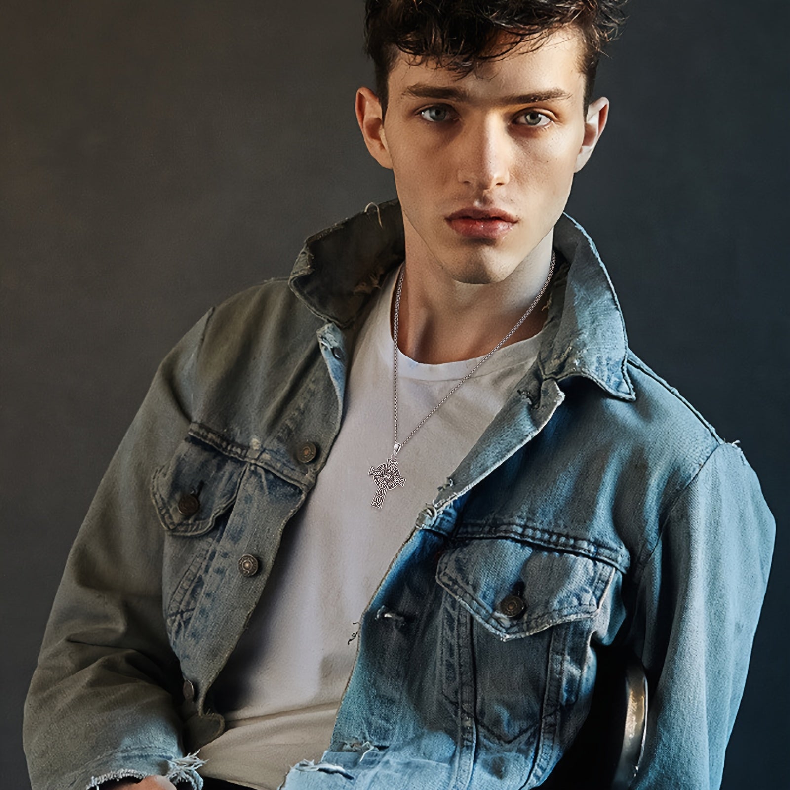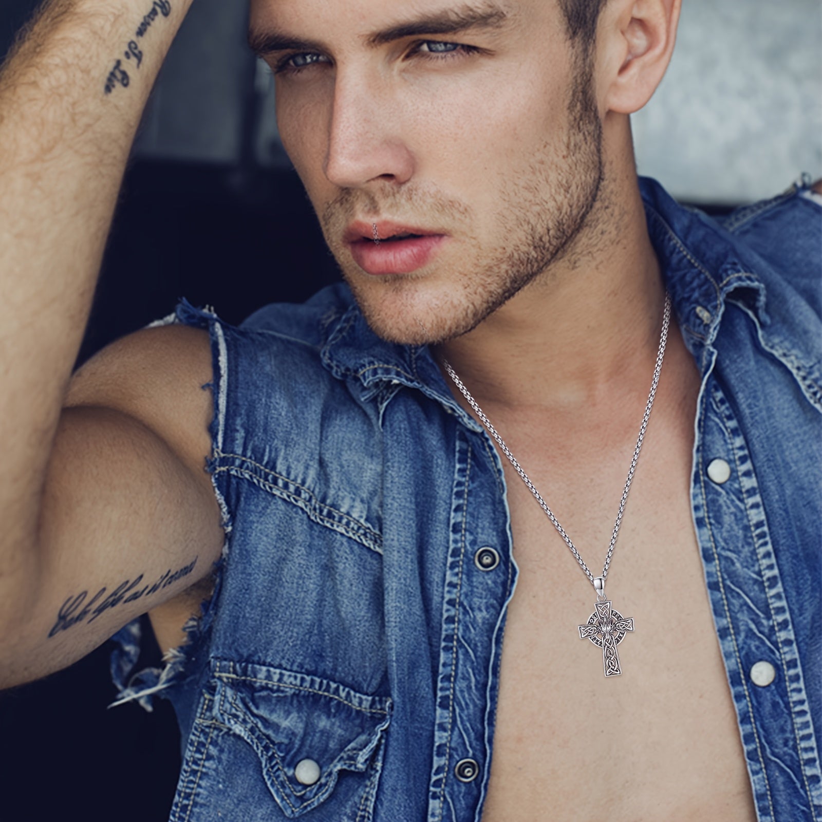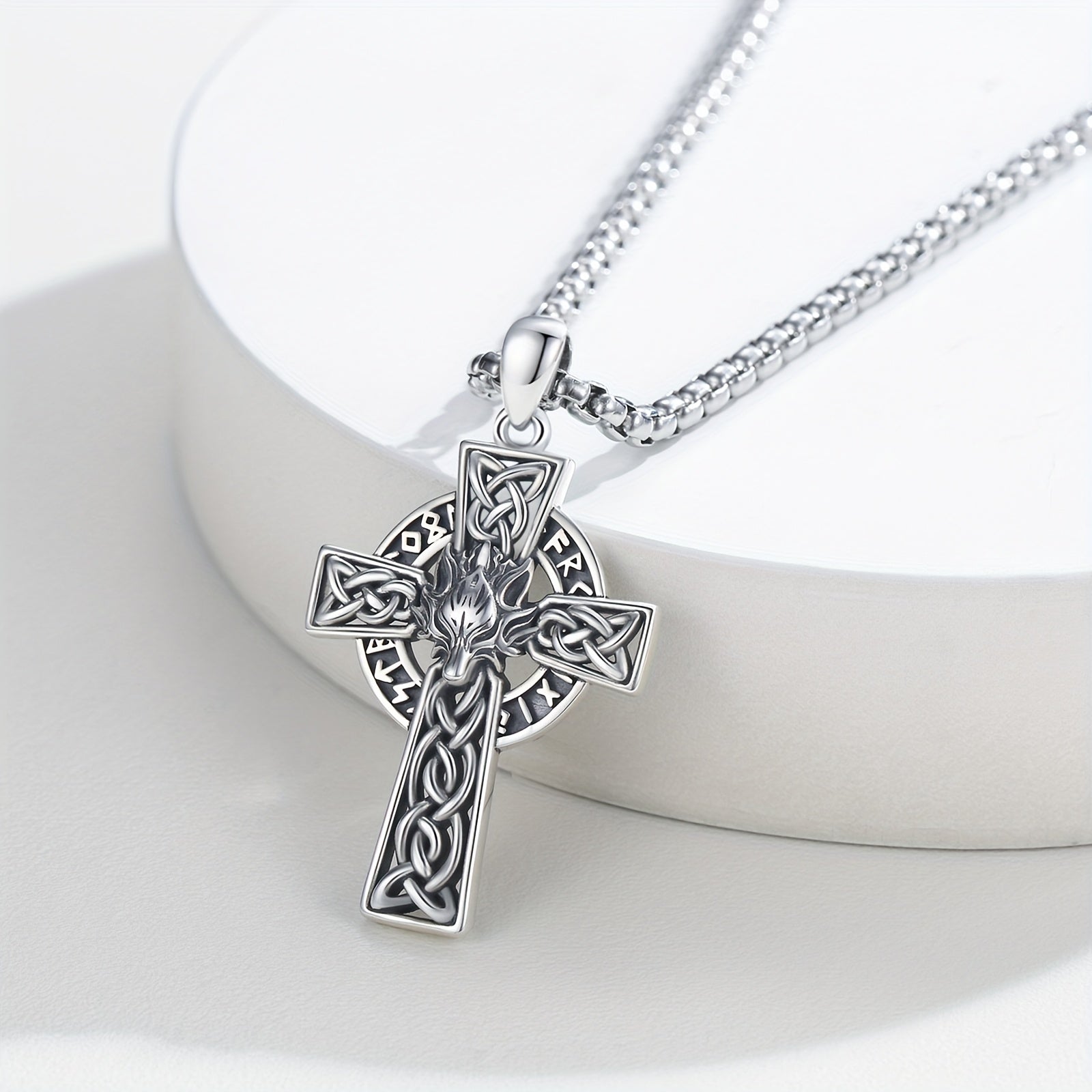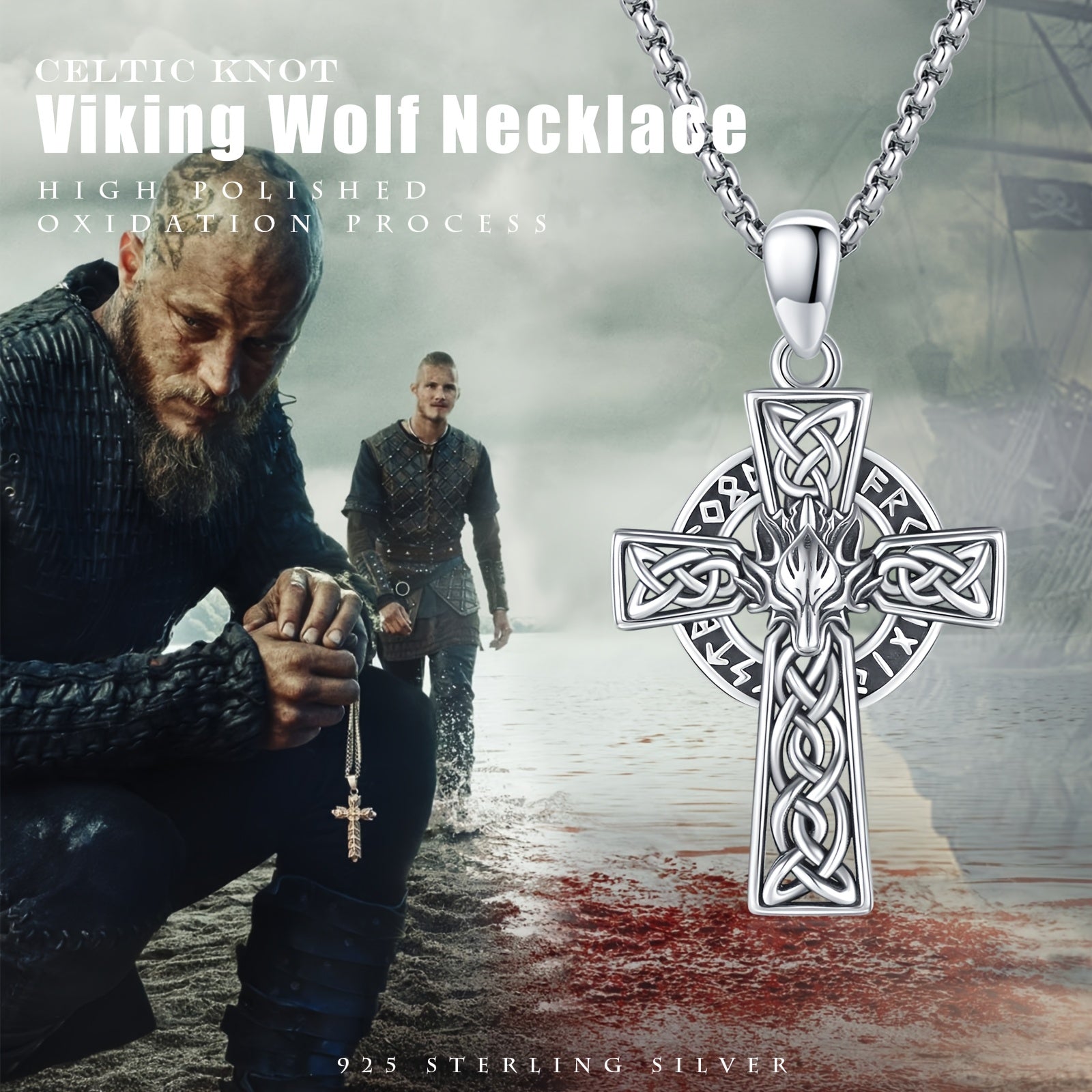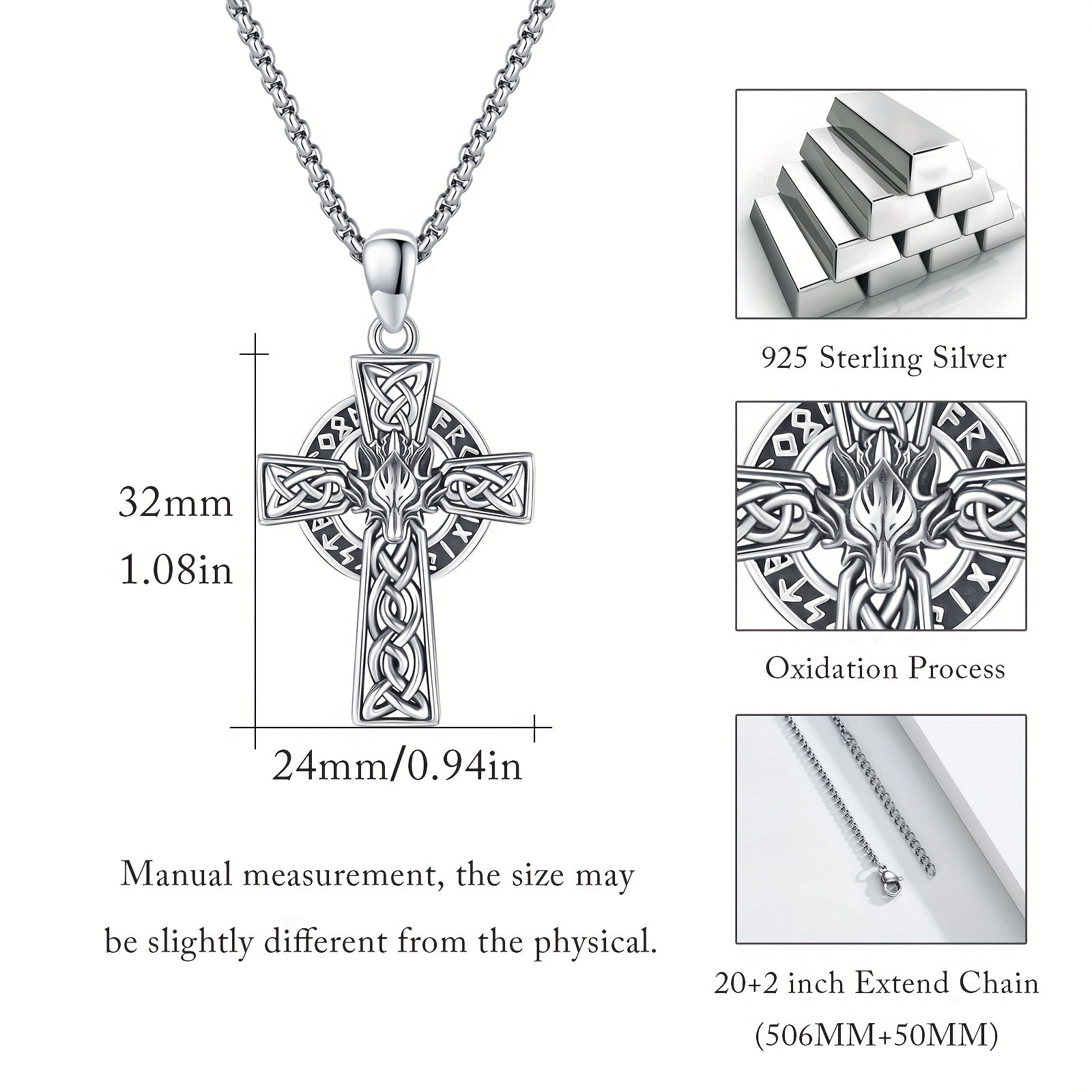 This stylish necklace features a Viking Wolf Vintage Cross Pendant crafted from 925 Sterling Silver. Suitable for men, women, and boys, this unique piece of jewelry will add a touch of Celtic charm to any outfit.