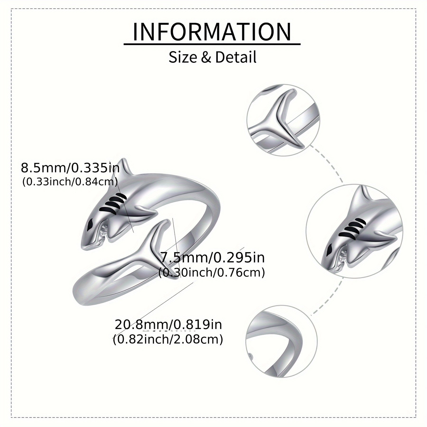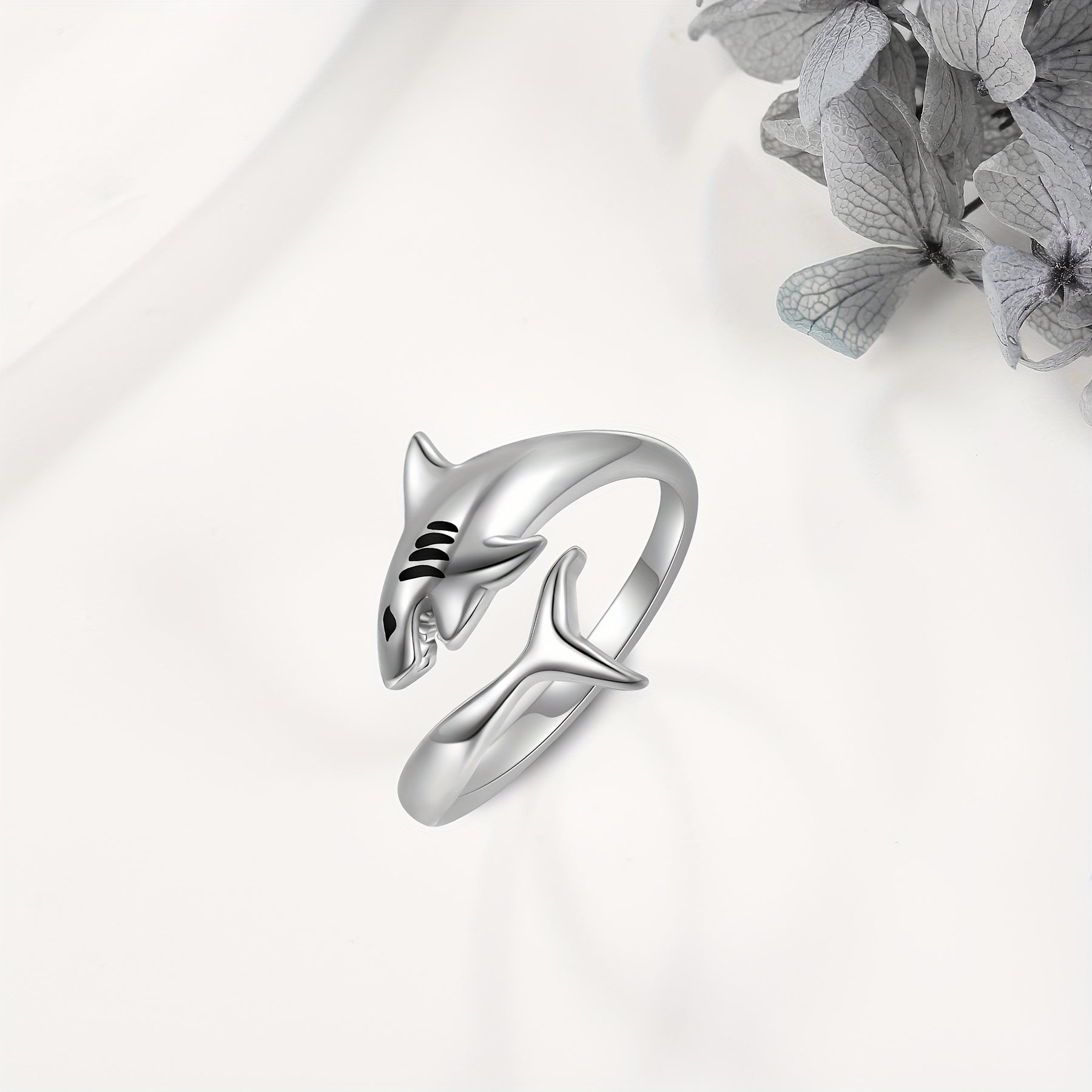 This stunning 925 sterling silver shark ring is a must-have for ocean lovers. It features a detailed shark design that wraps around your finger. Perfect for both women and men.