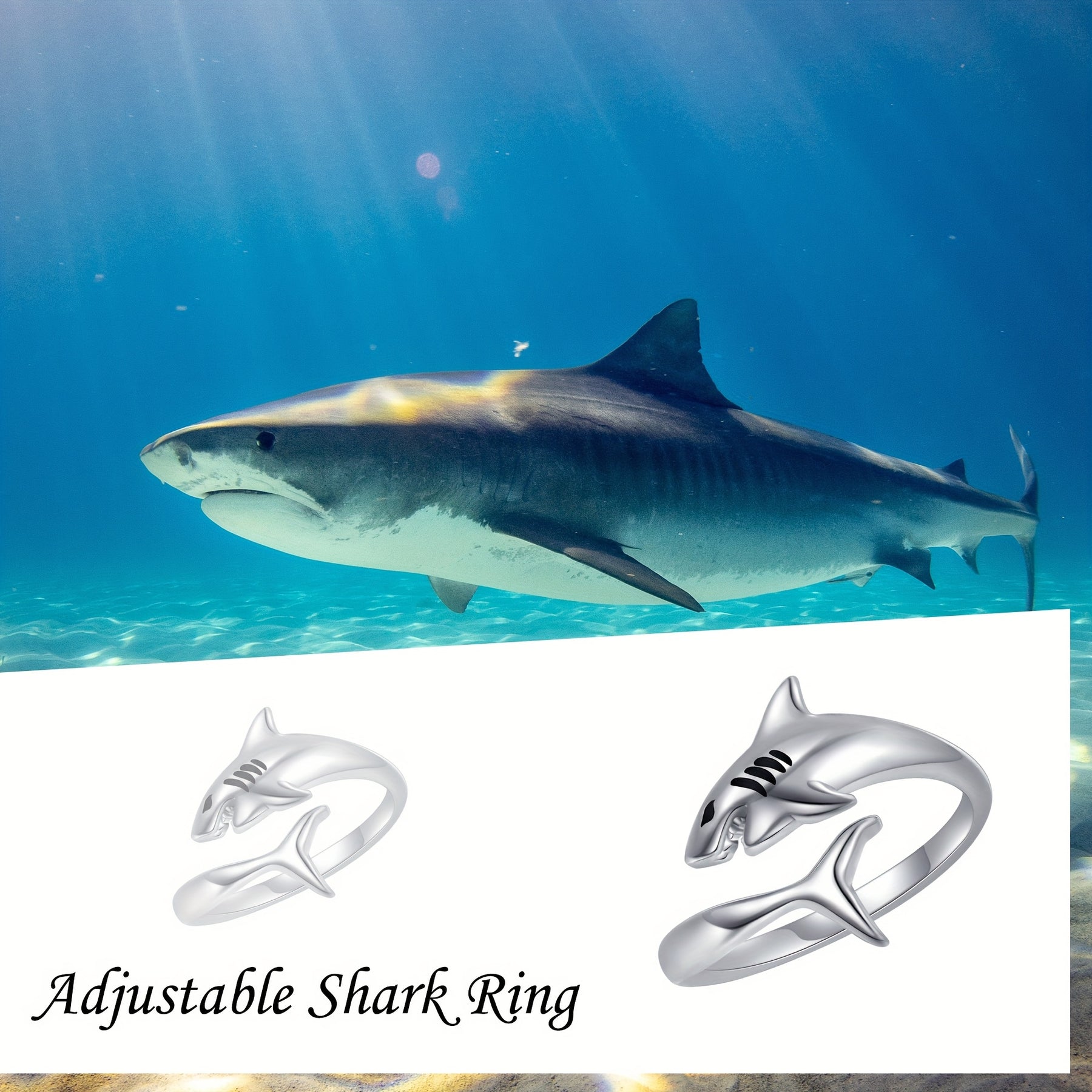 925 Sterling Silver Shark Ring Adjustable Open Ocean Jewelry