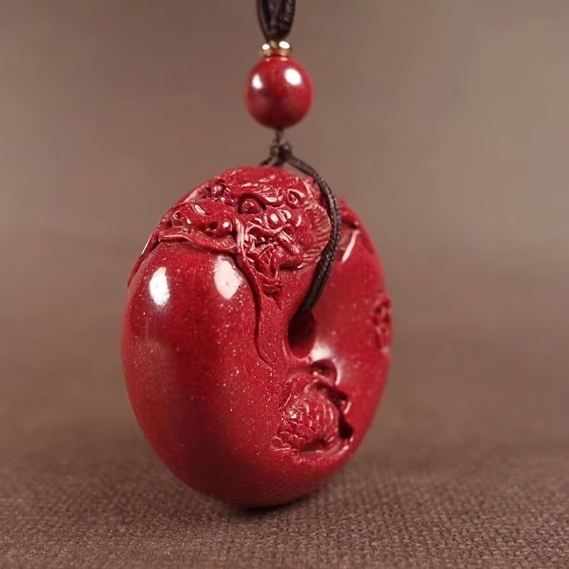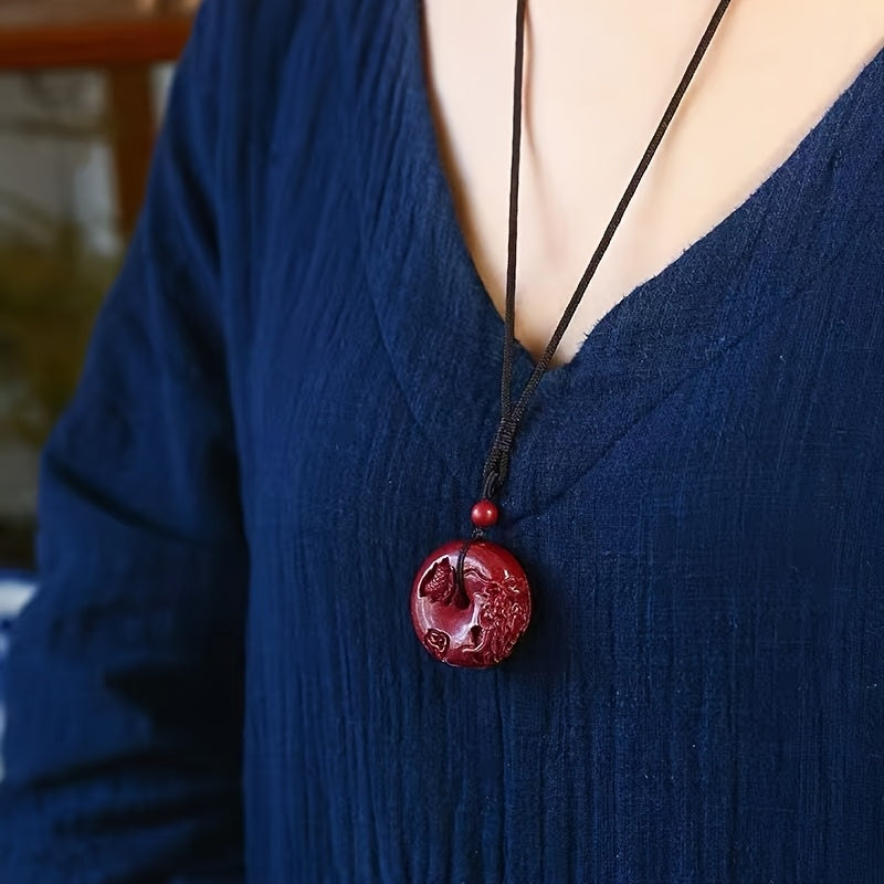 Boho Red Cinnabar Dragon Necklace Hemp Rope Faux Gemstone Charm Non Magnetic