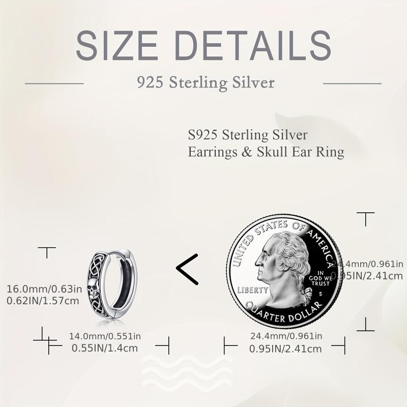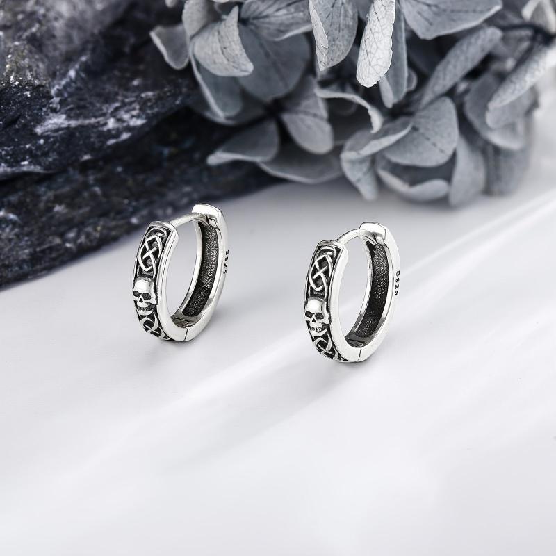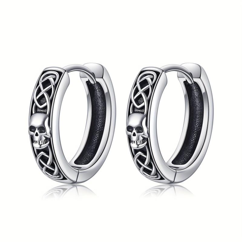 Celtic Skull Earrings 925 Sterling Silver Viking Skeleton Hoop Earrings