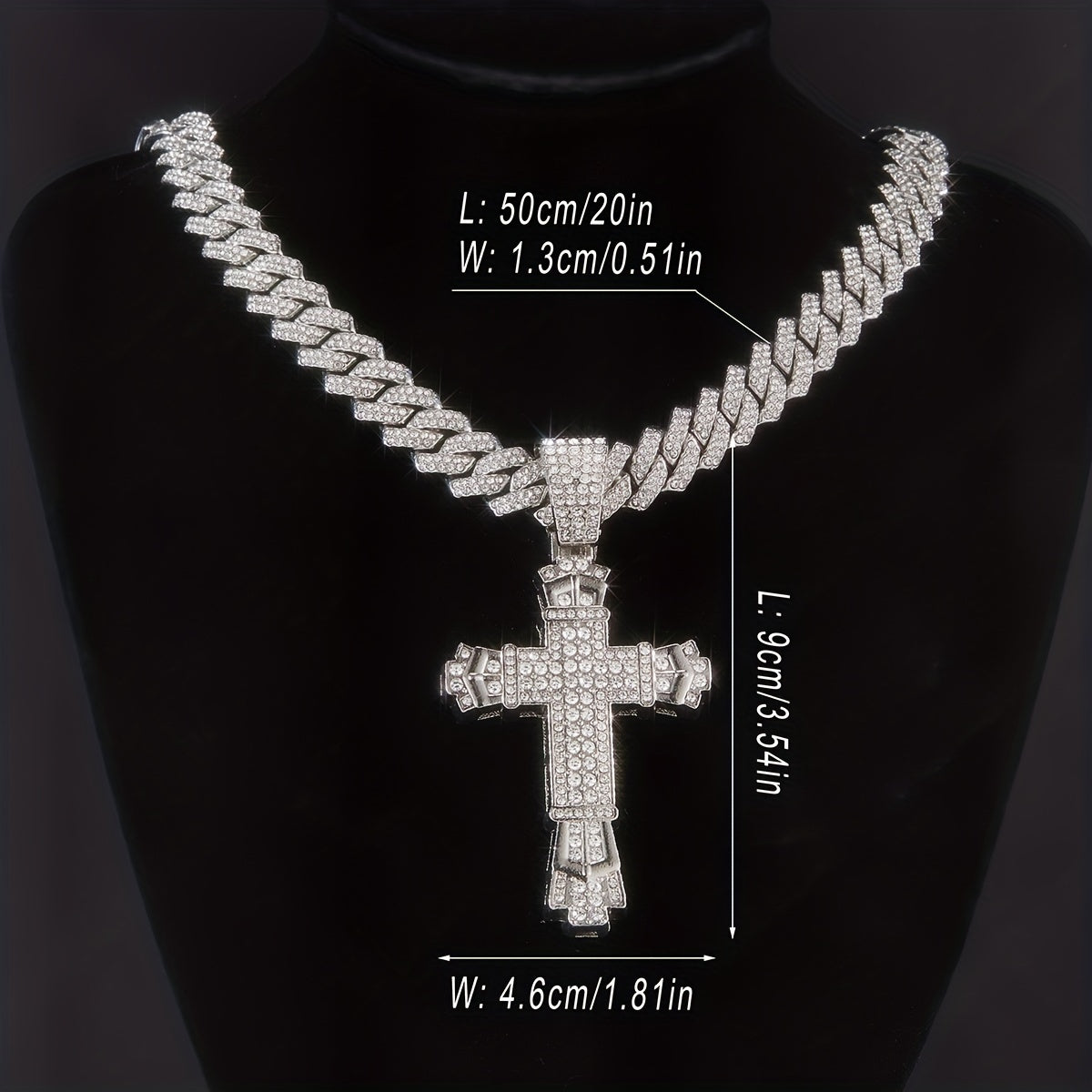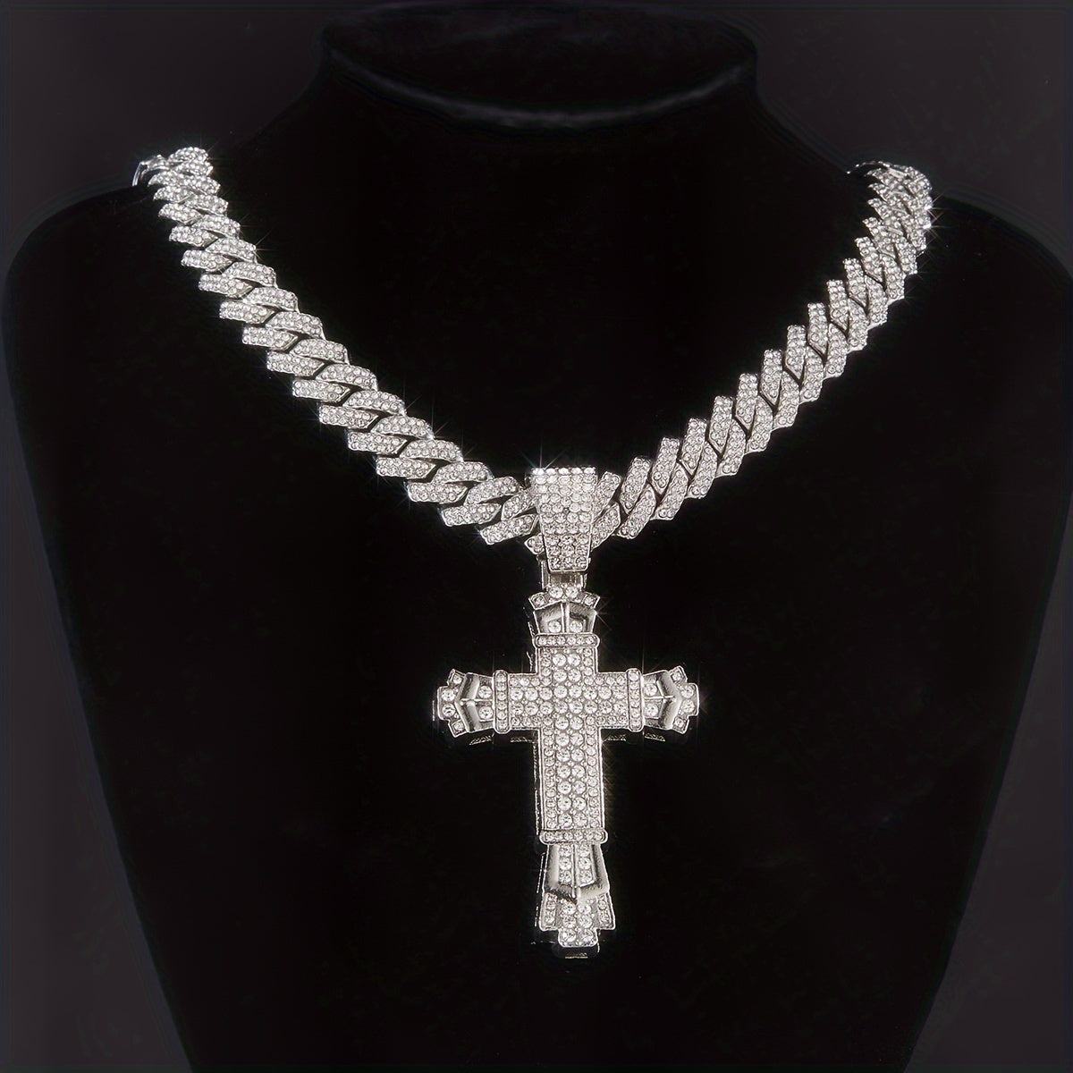 This exquisite cross pendant necklace features a shining design with rhinestones, perfect for adding a touch of elegance to any outfit. Ideal for parties, rappers, or as a thoughtful gift for mothers.