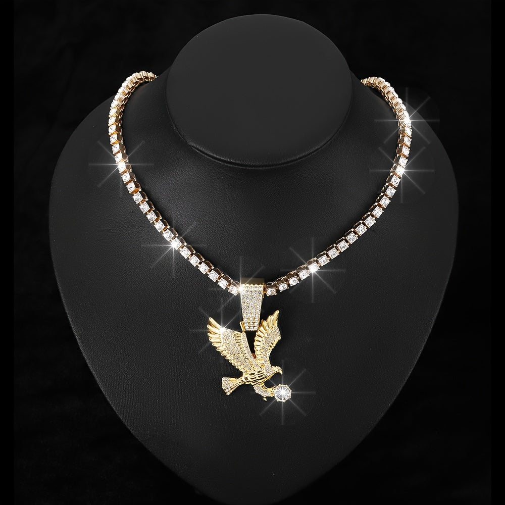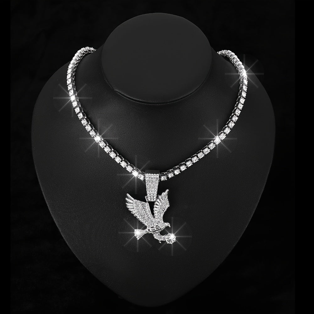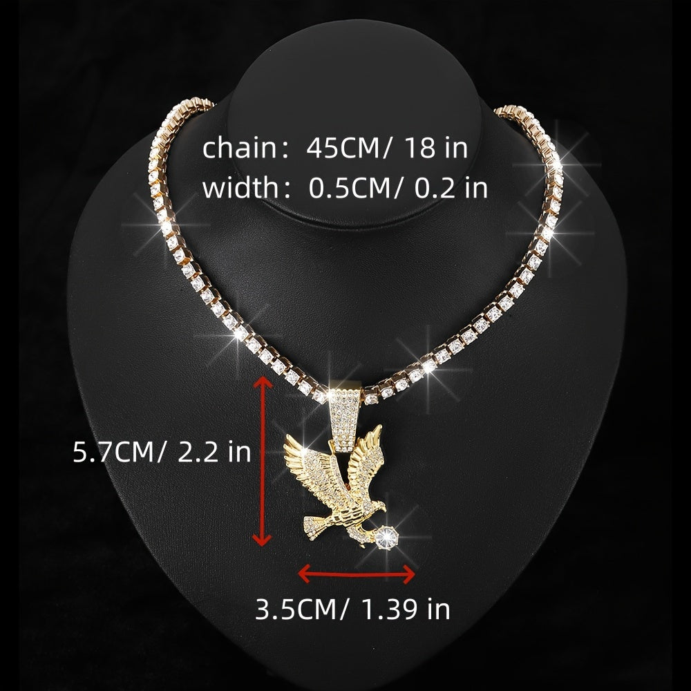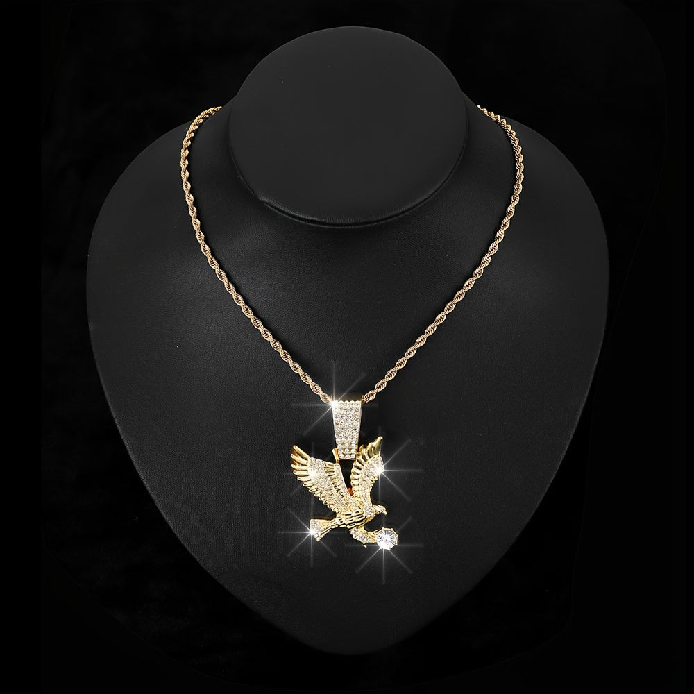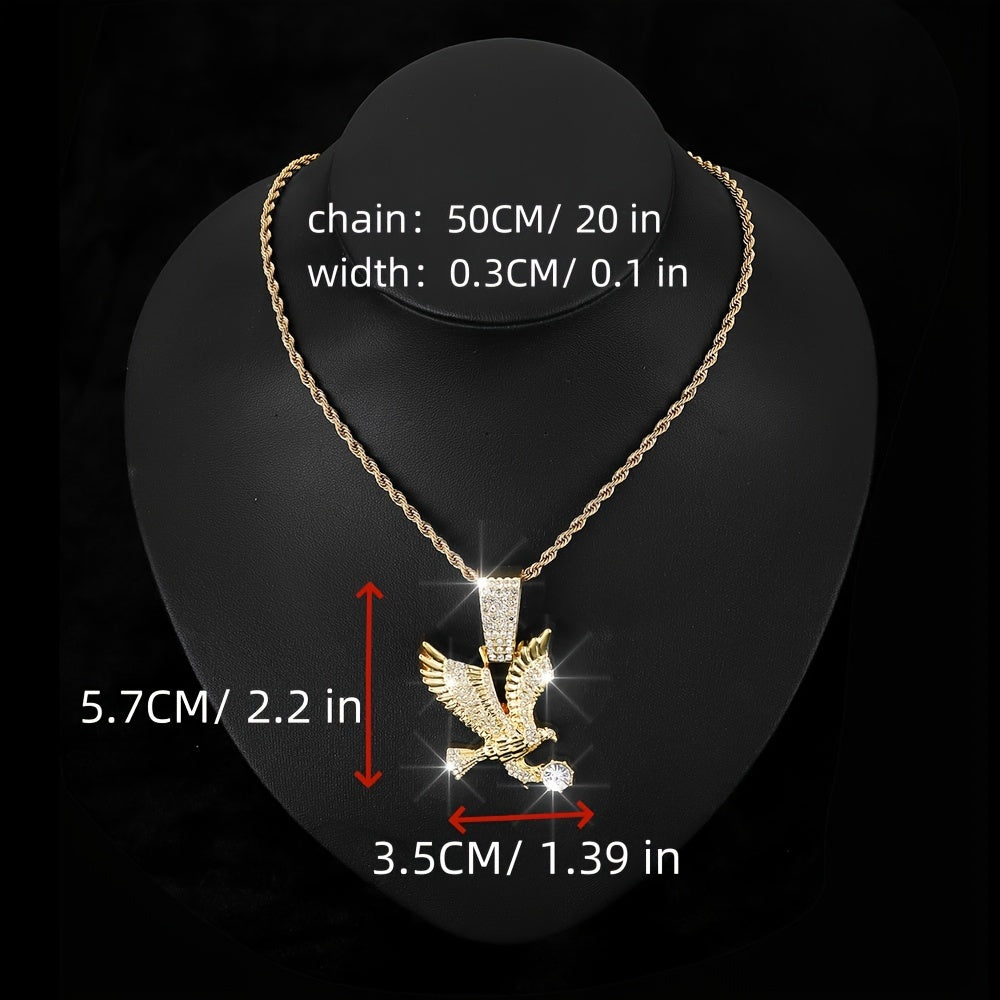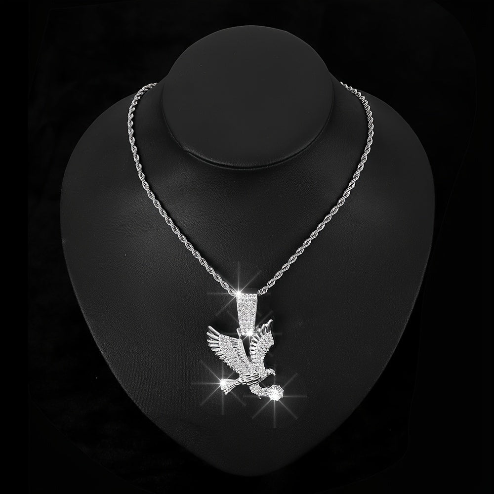 Make a bold statement with this unique Eagle Pendant Necklace featuring a twisted rope and tennis chain design adorned with rhinestones. Perfect for parties and special occasions.