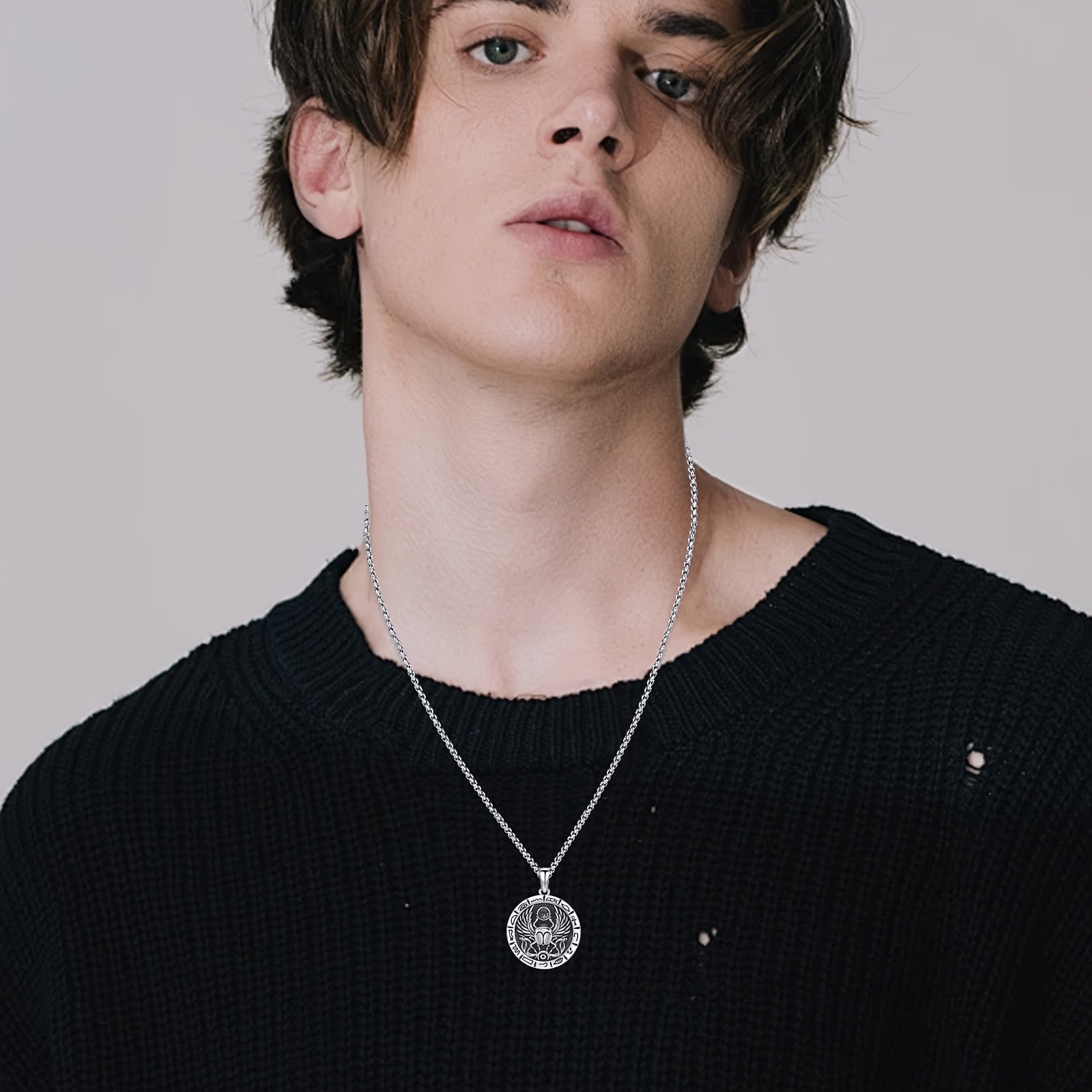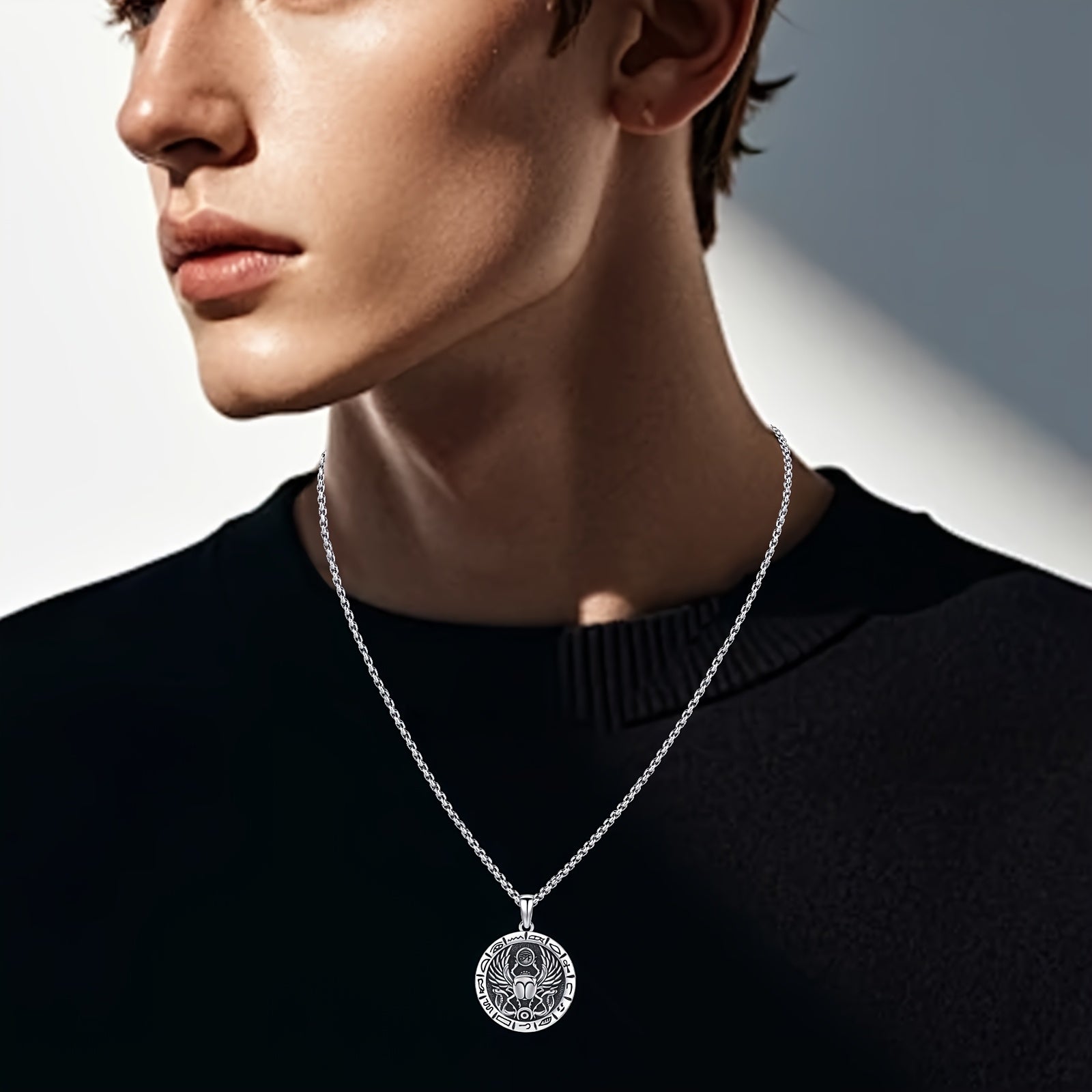 Vintage oxidised silvery pendant with stainless steel chain, featuring the Eye of Horus design. Ideal for those who appreciate Egyptian symbolism.