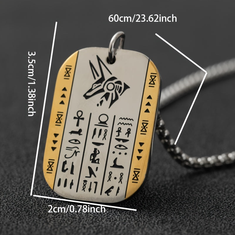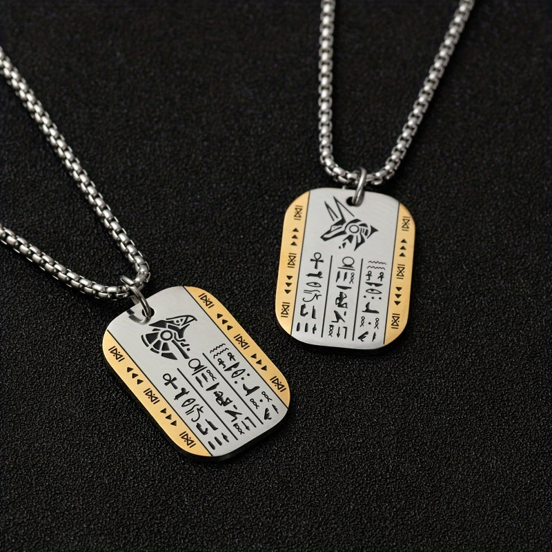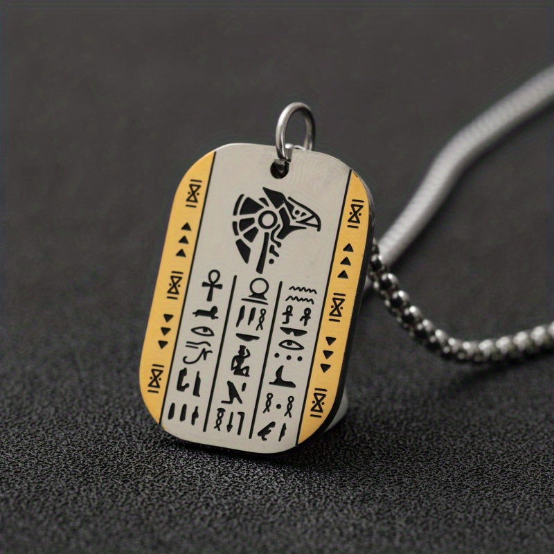 Express your style with this Egyptian Hieroglyphics Pendant Necklace made of stainless steel. Perfect for hip hop and punk rock enthusiasts.