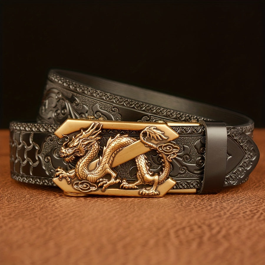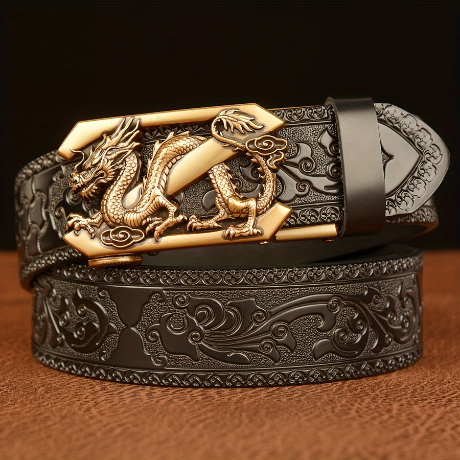 This cowhide belt is designed for daily life, leisure time, parties, work, business, and formal occasions. It is durable and features a retro pattern that adds a stylish touch to any outfit.