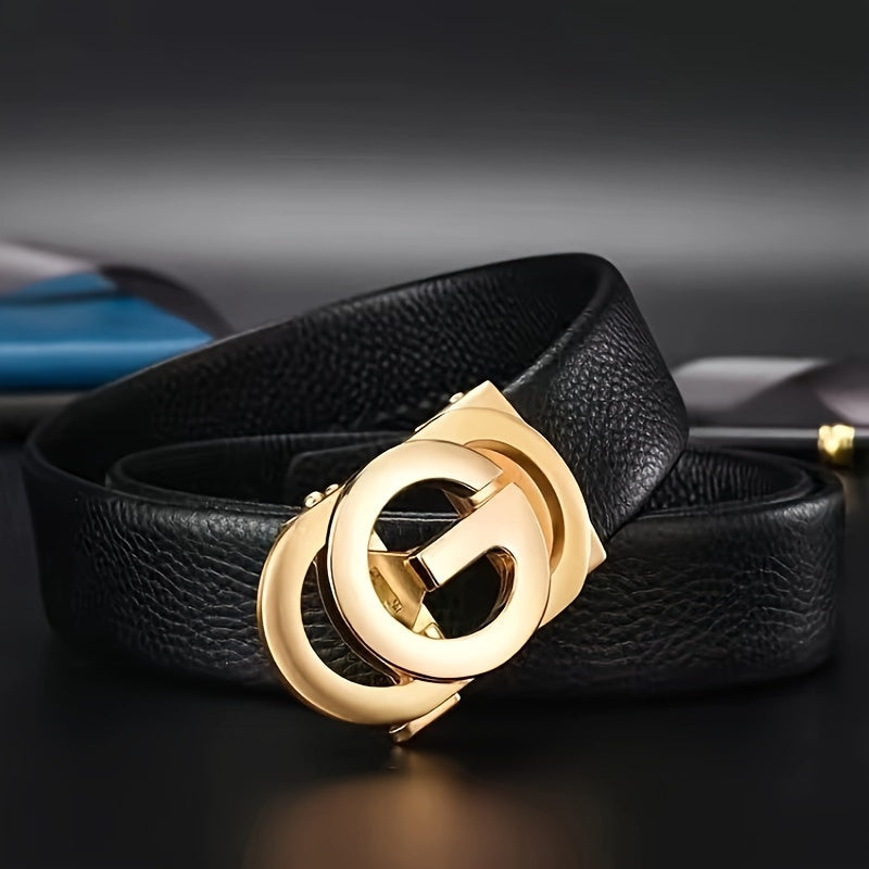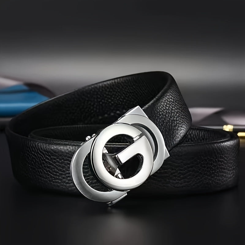 This unisex G letter buckle belt is perfect for young men and women. It features a unique automatic buckle design that is easy to adjust and stylish to wear with any pants.