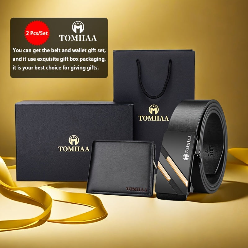 This set includes a high-quality real leather belt with automatic buckle and a stylish wallet. Perfect for dads, husbands, or boyfriends. Show your loved one you care with this practical and elegant gift set.