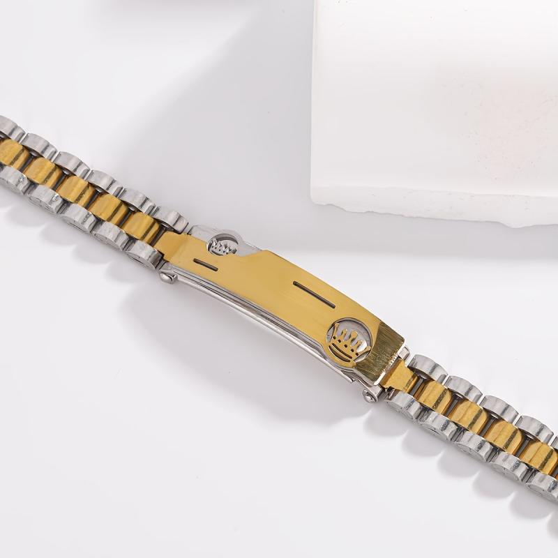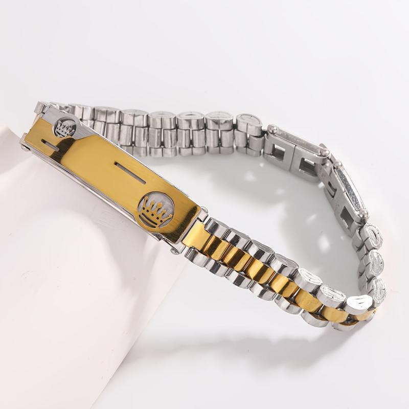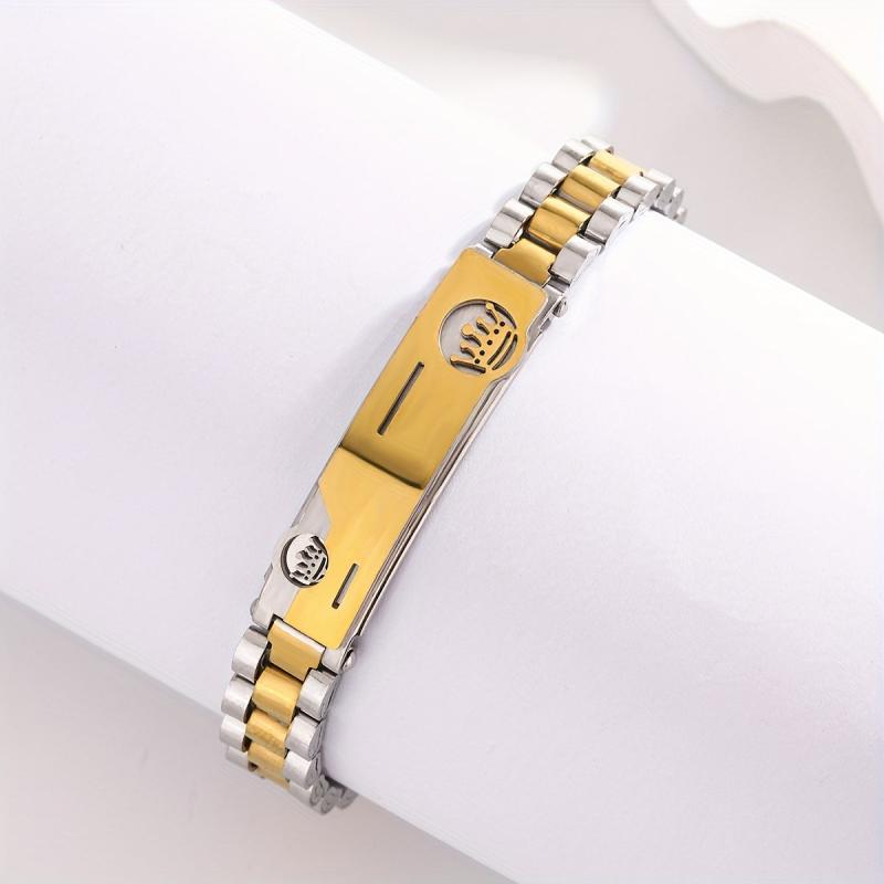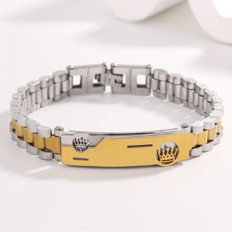 • Golden Tone Double Crown Stainless Steel Bracelet