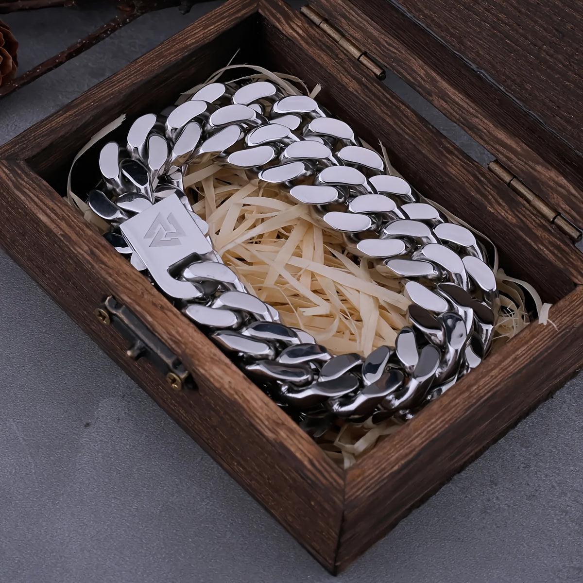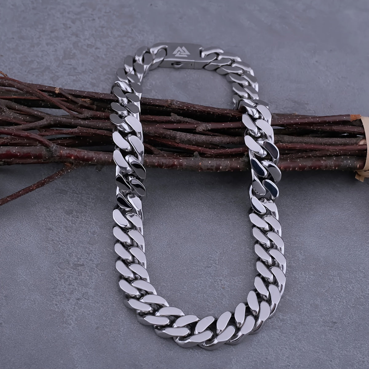 Stylish and durable Cuban chain necklace featuring Viking Rune design. Made of high-quality stainless steel with a polished finish. Perfect gift for boyfriend or couples.