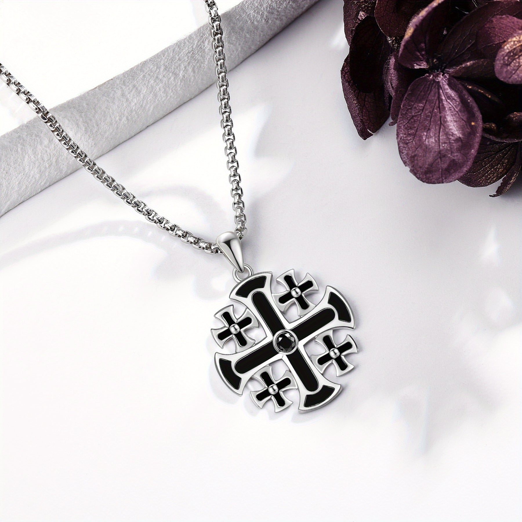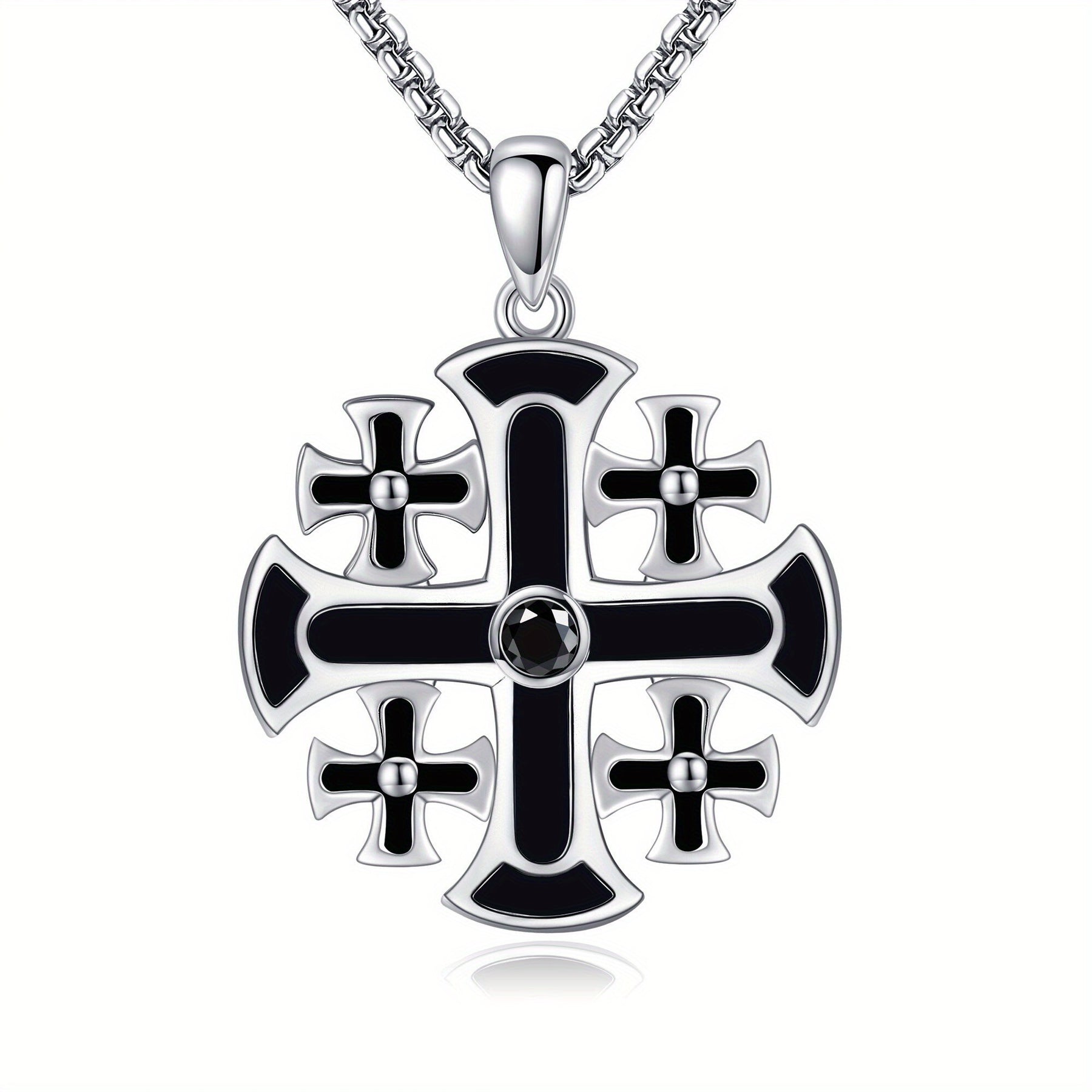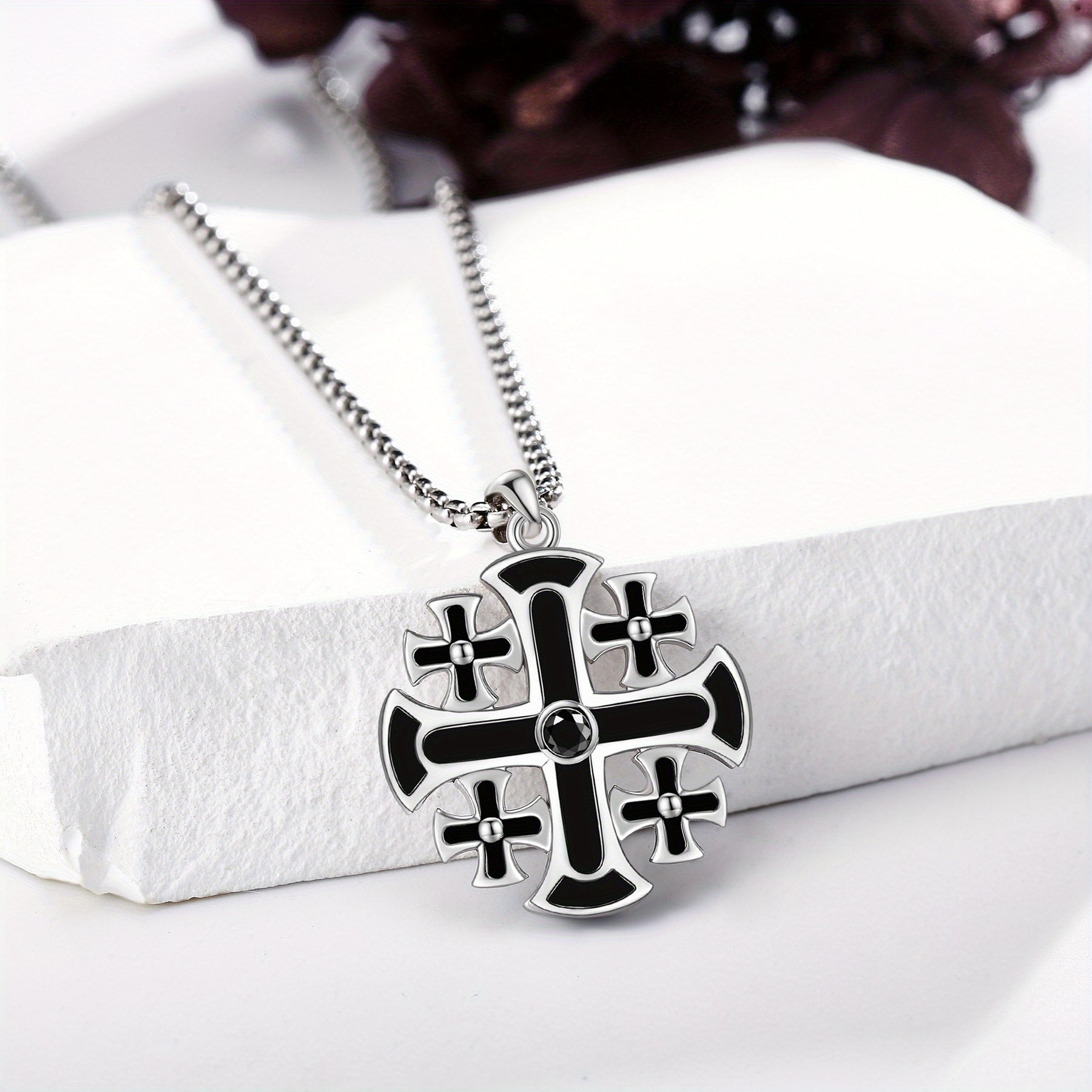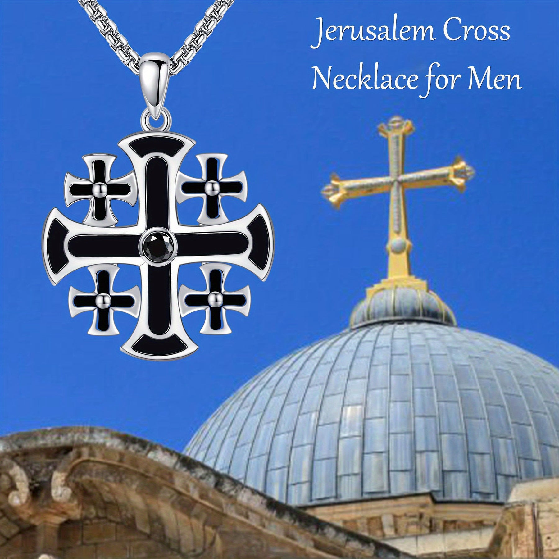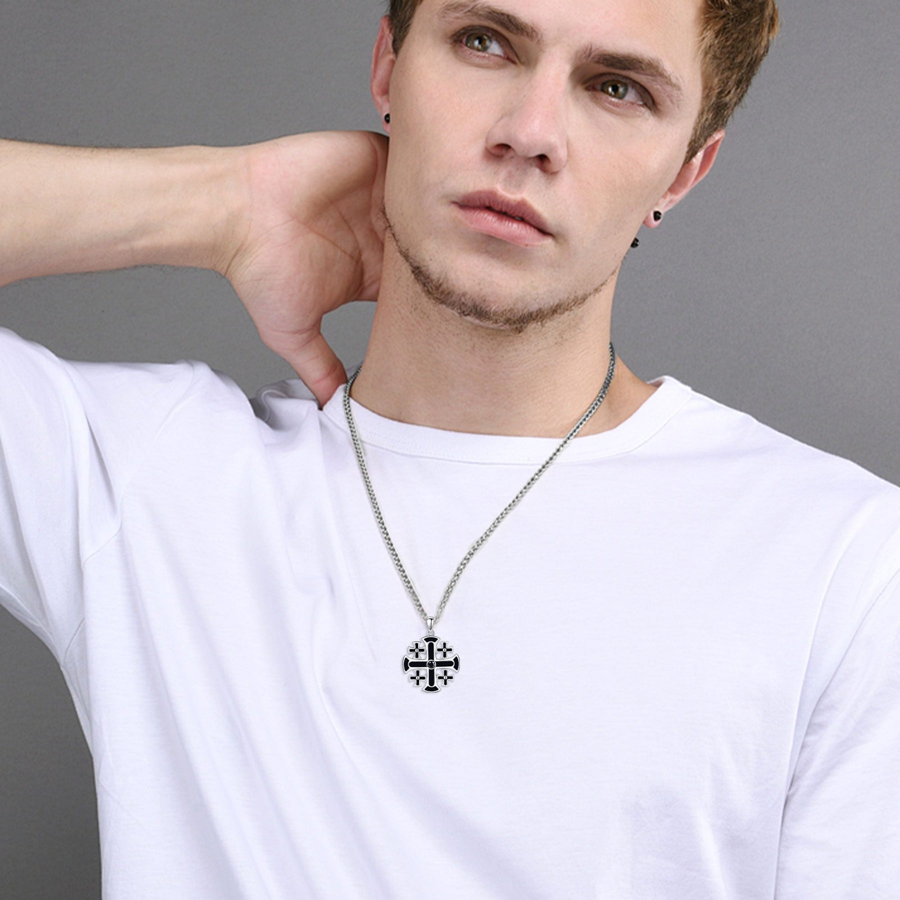 This Jerusalem Cross necklace features a pure silvery pendant, making it a stylish and meaningful religious jewelry piece for men.