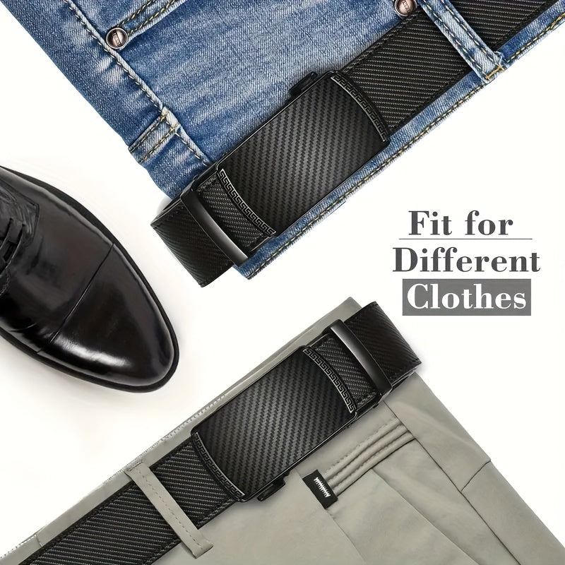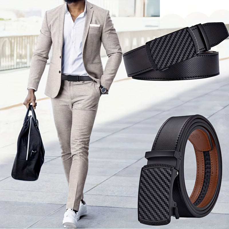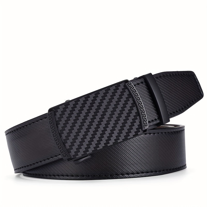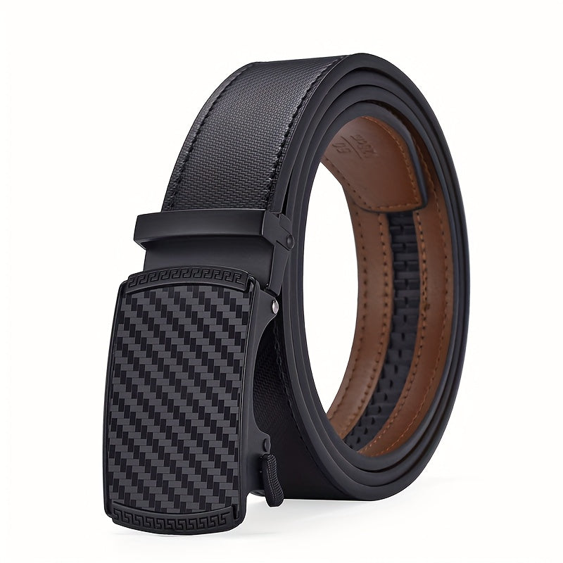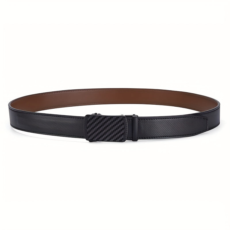 Upgrade your style with this adjustable slide ratchet belt featuring a brown checkered automatic alloy buckle. Perfect for dress pants, shirts, and oxfords. It offers a trimmable fit for a customized look.