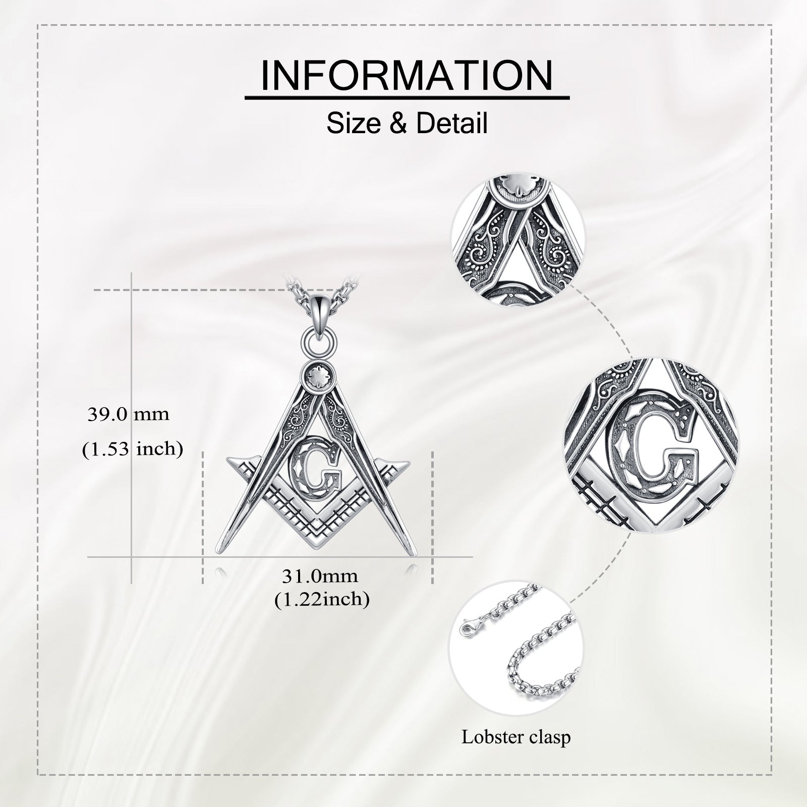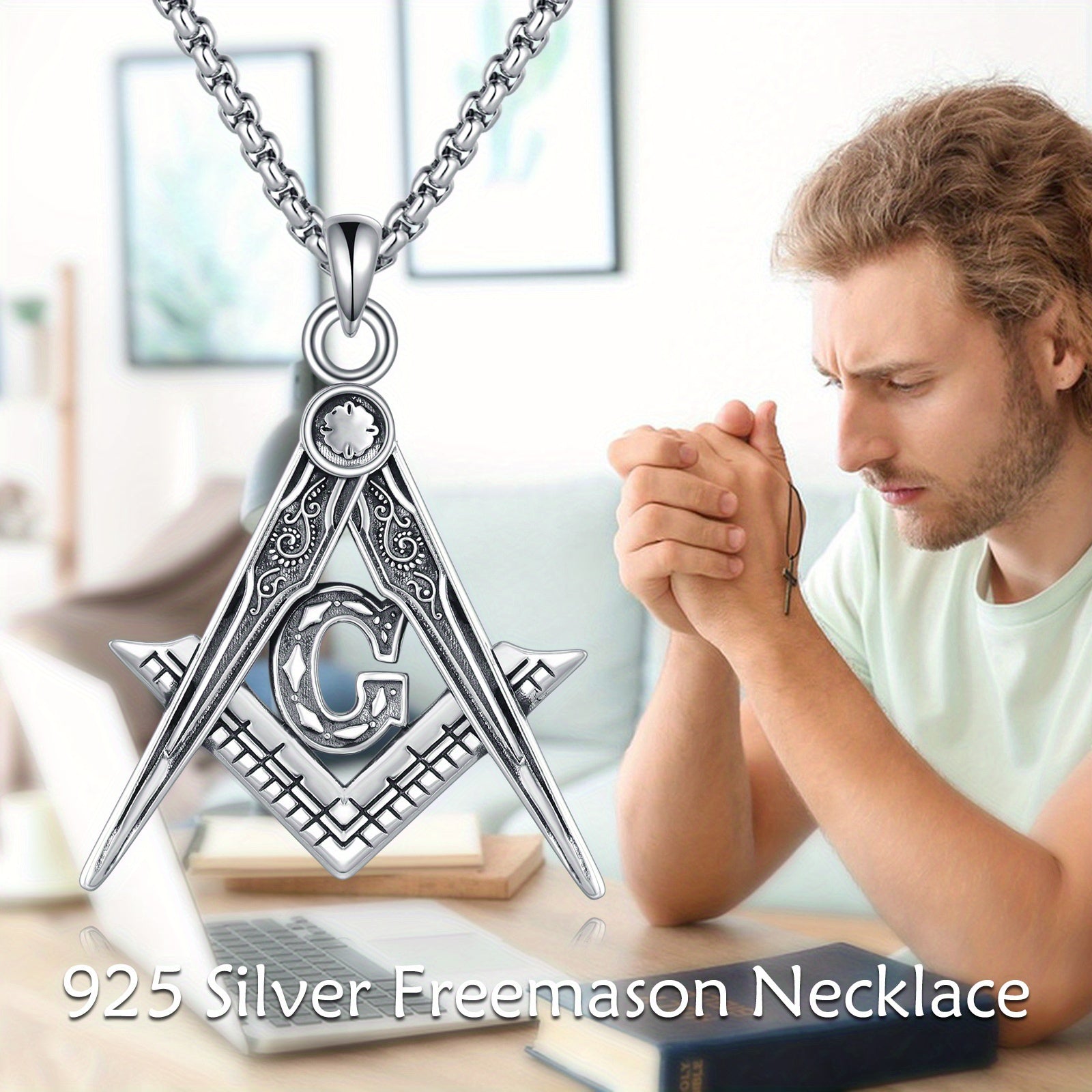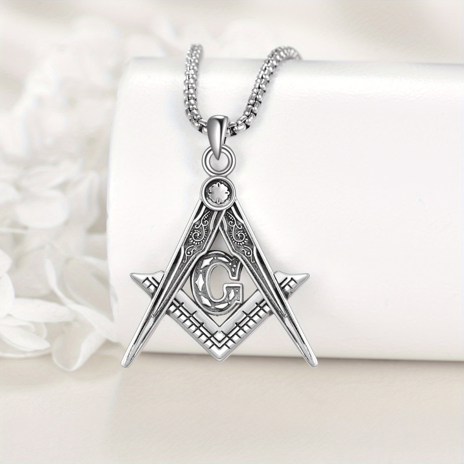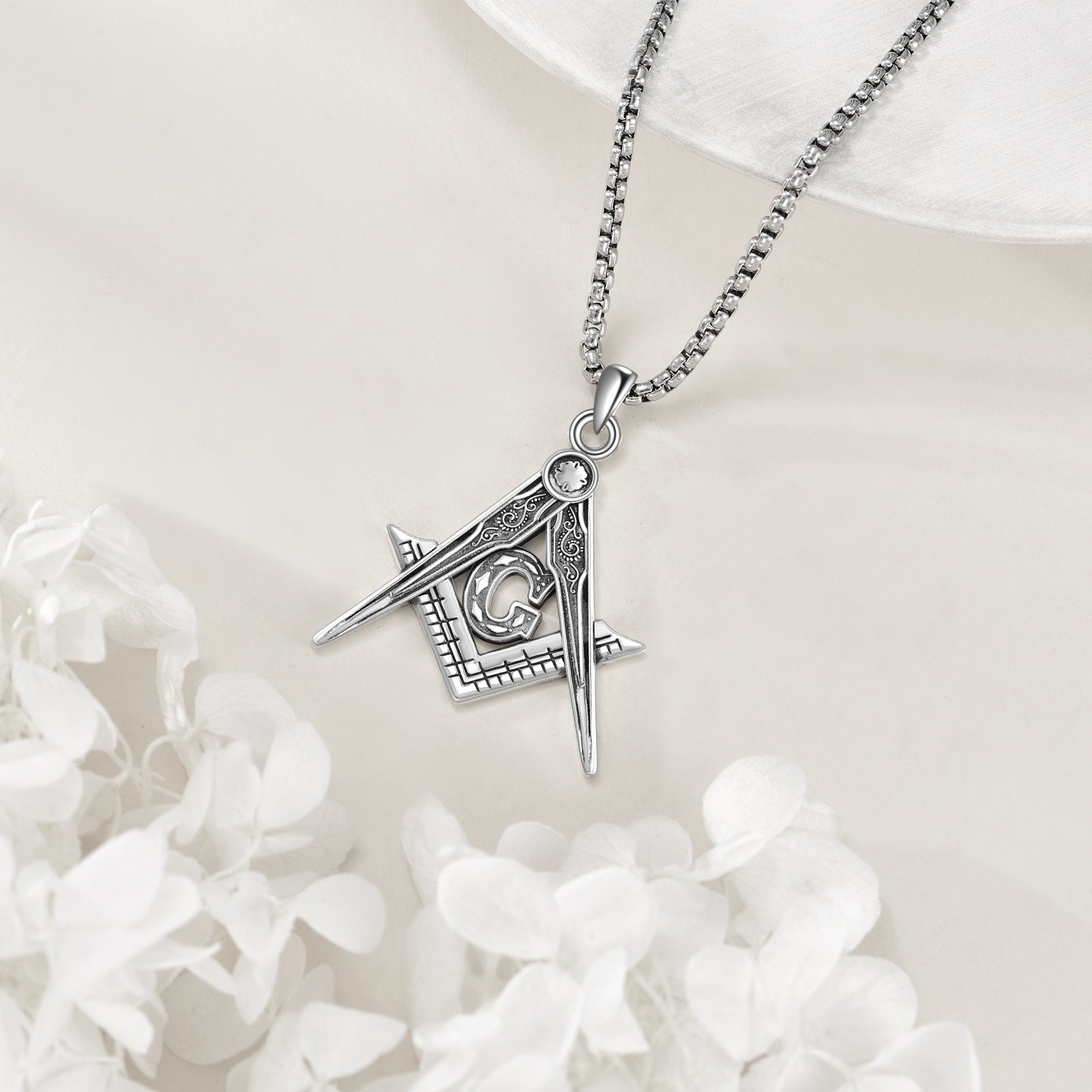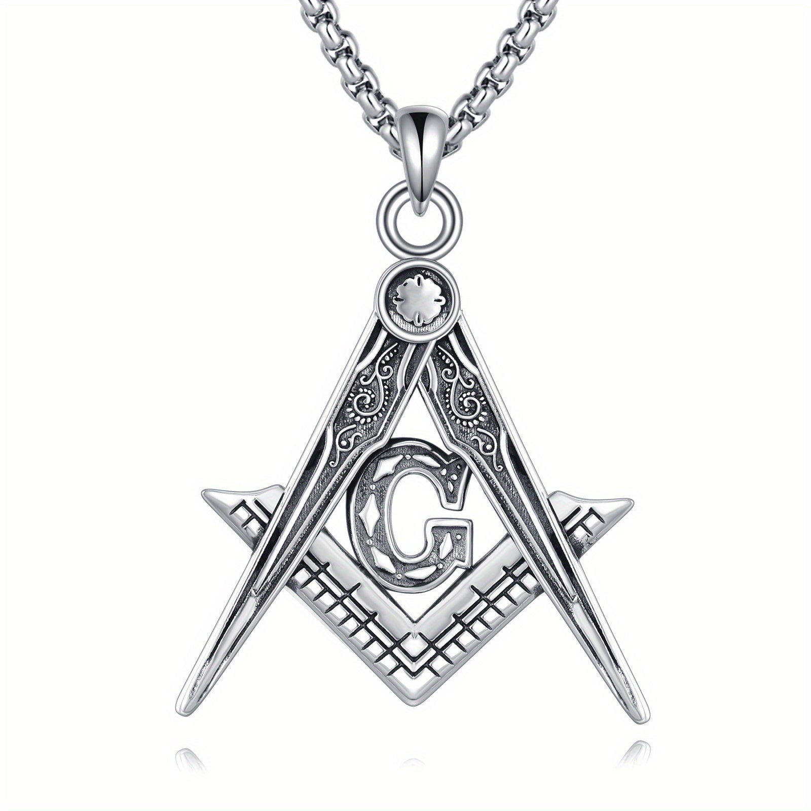 This 925 sterling silver Masonic necklace features an Accepted Masons pendant with the iconic Freemason compass symbol. Perfect jewelry for both men and women.