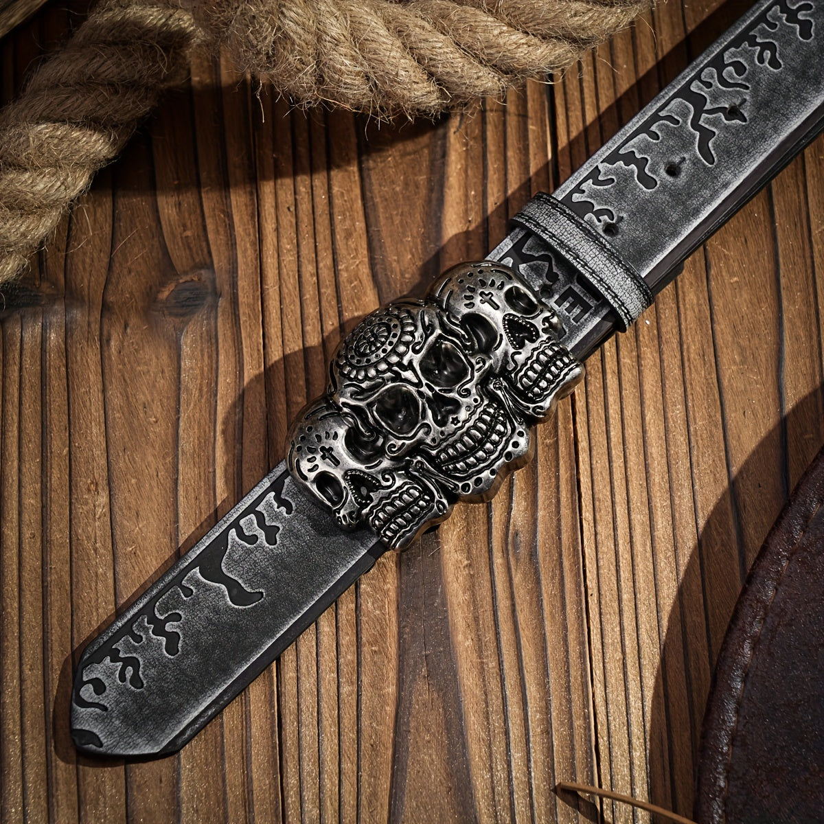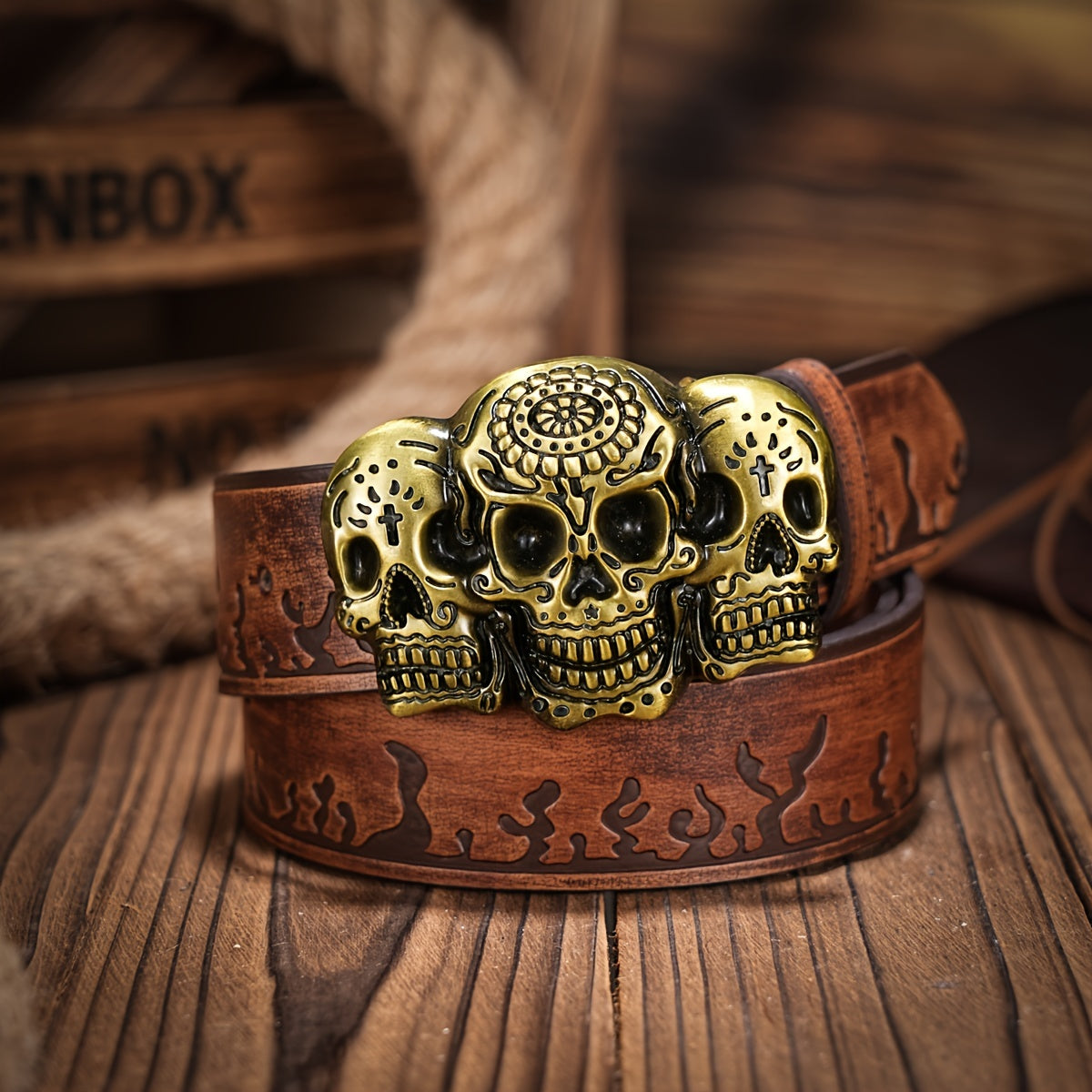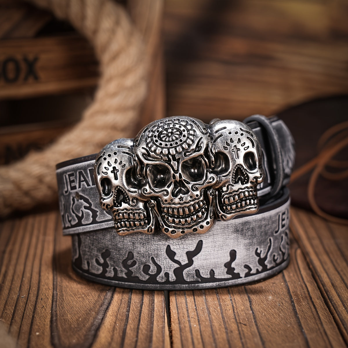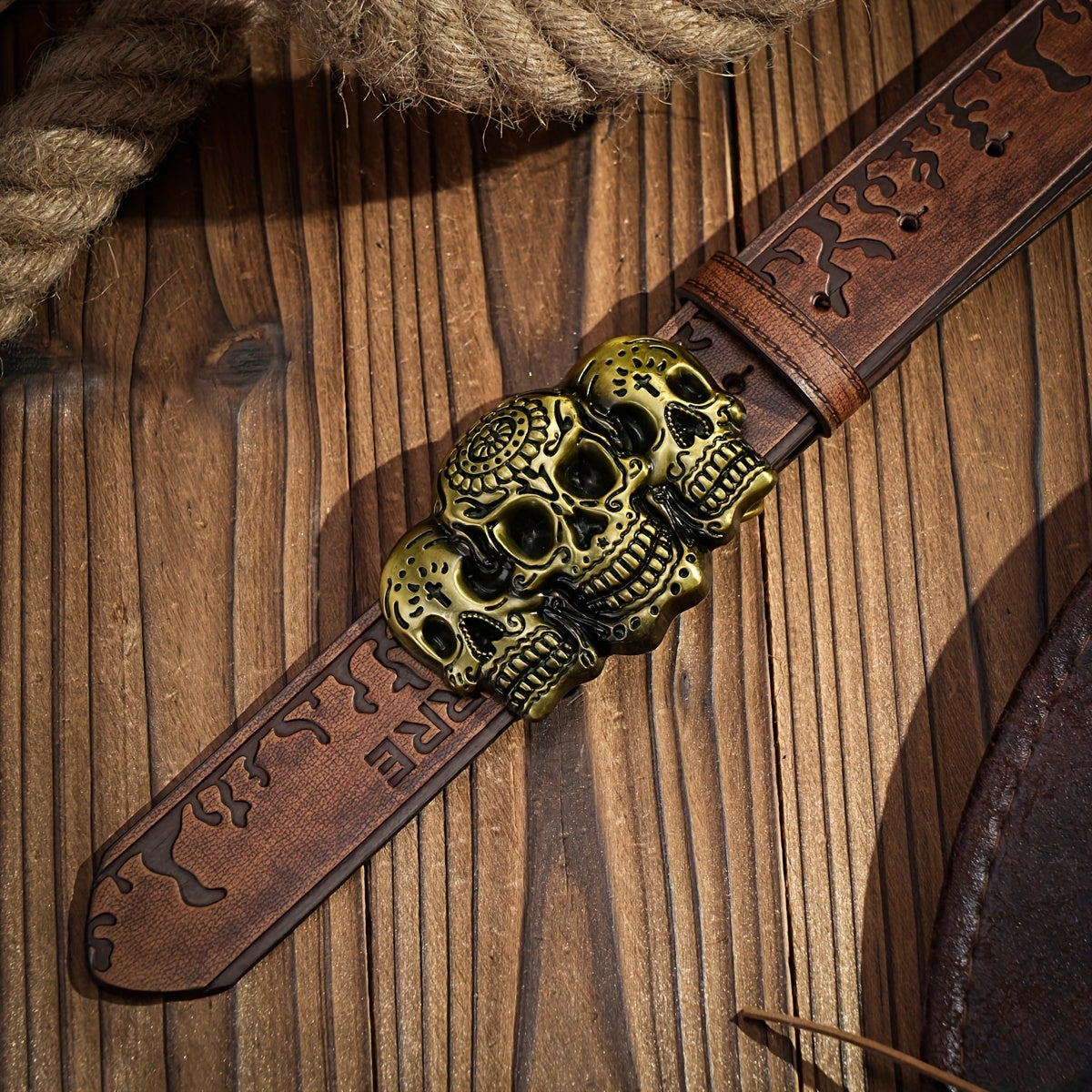 • Retro cowboy belt with skull pattern buckle