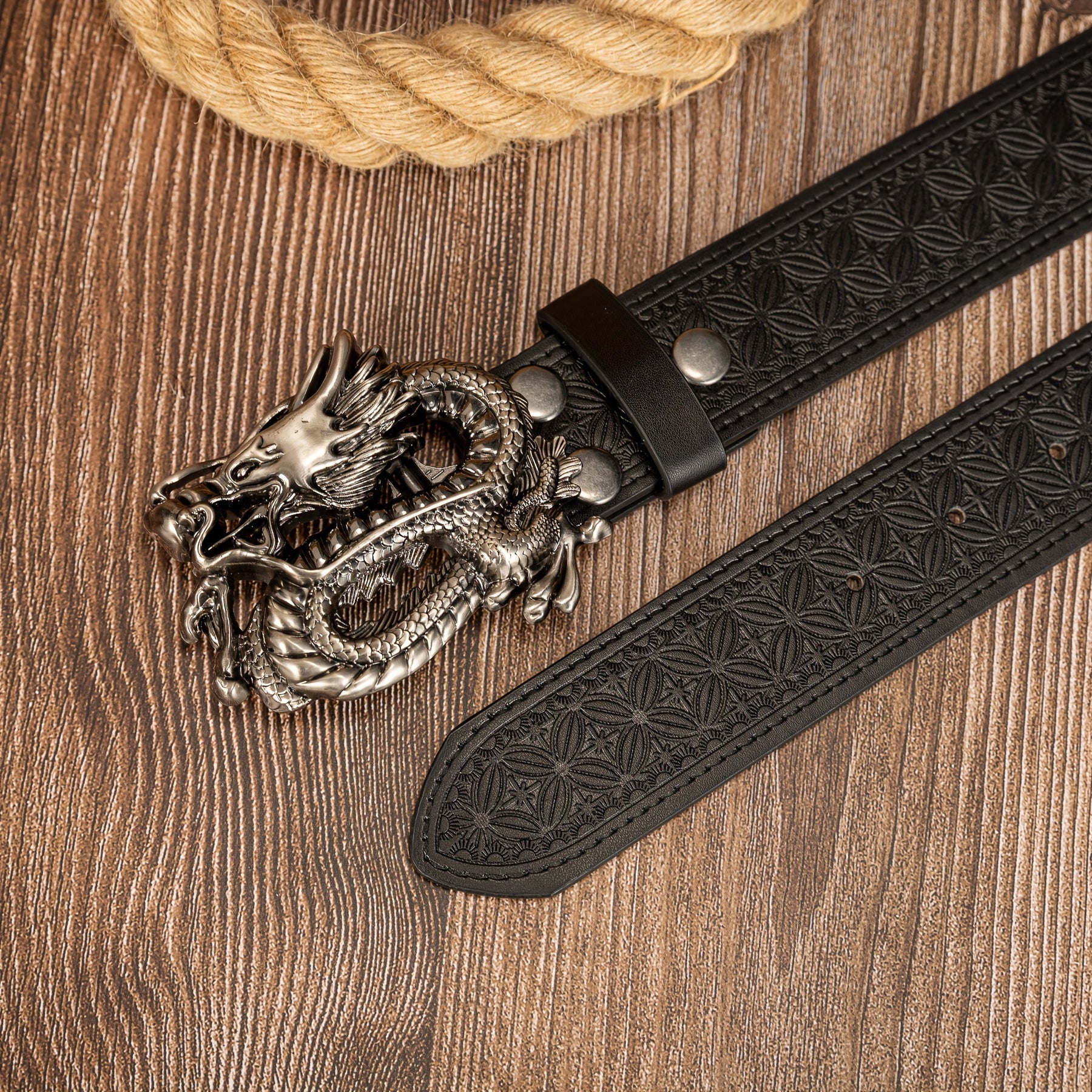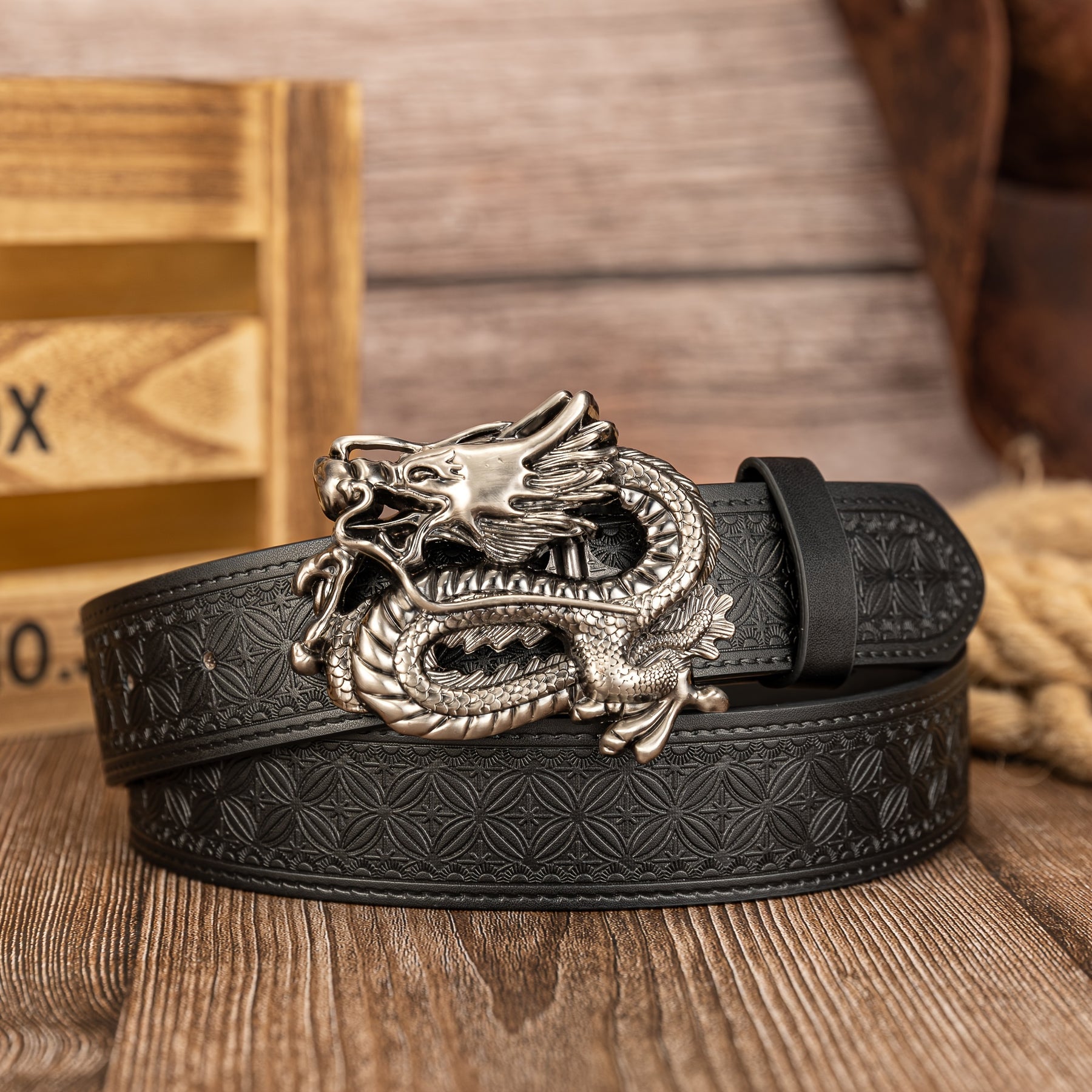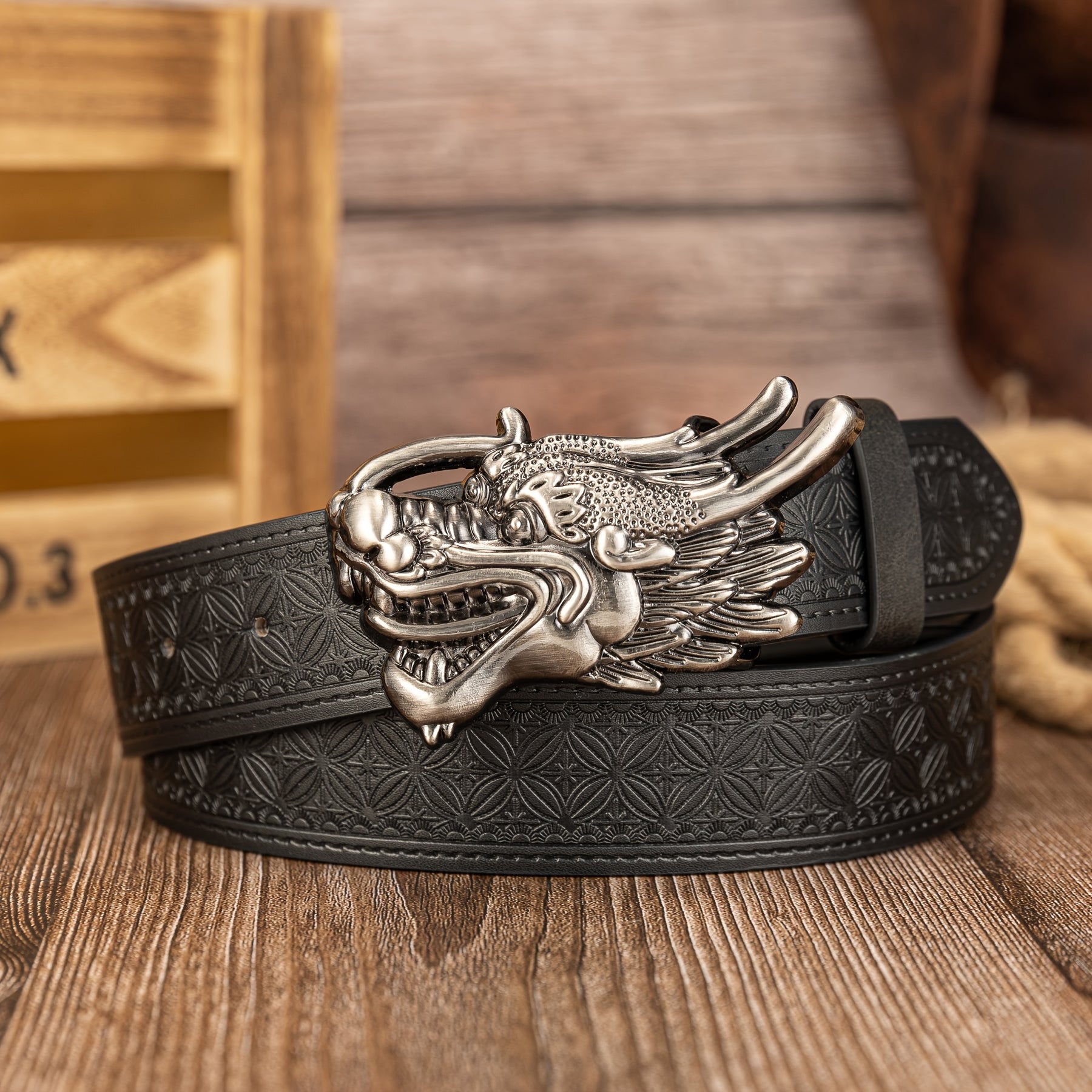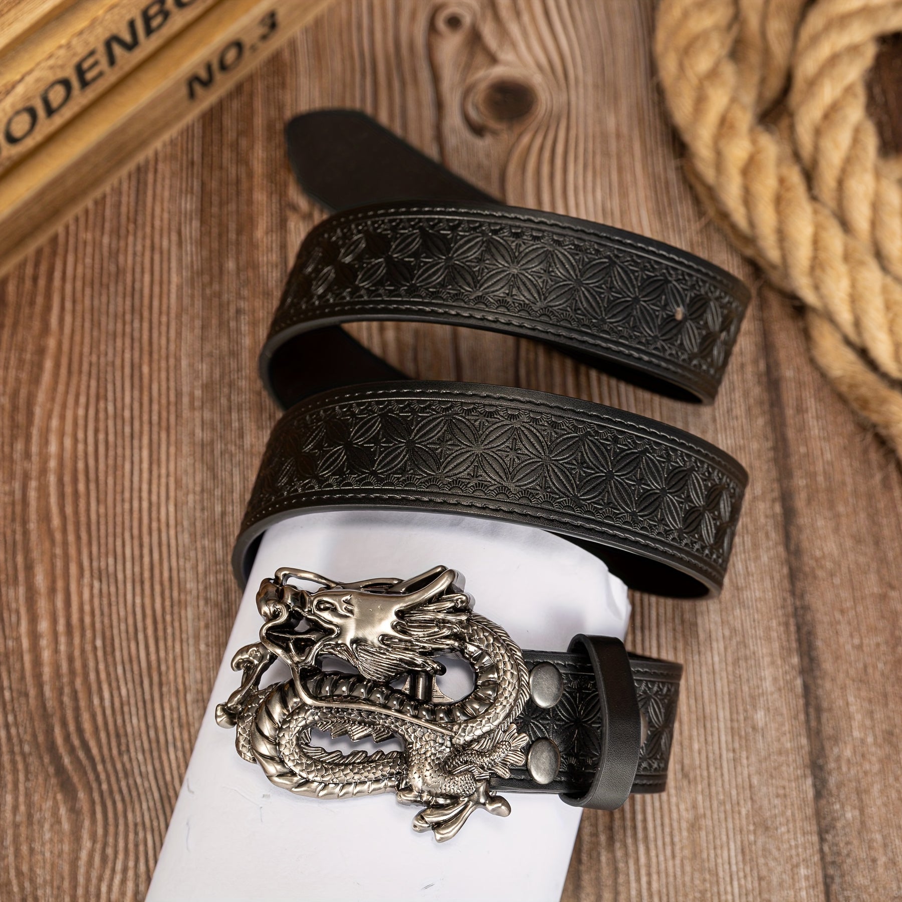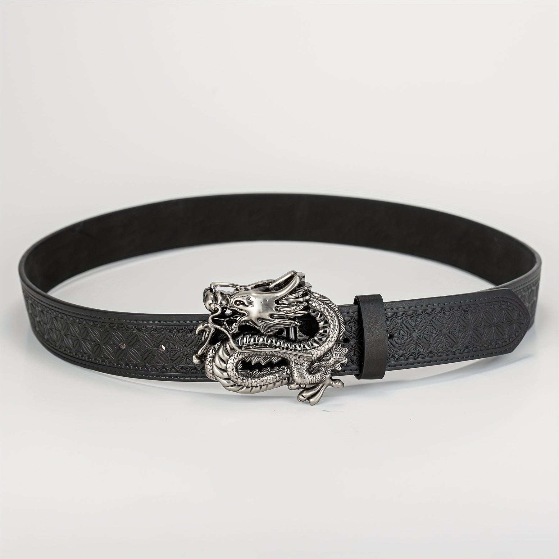 This men's belt features a 3D dragon buckle with an embossed pattern, made from PU leather. It adds a funky style to any outfit.