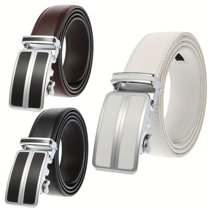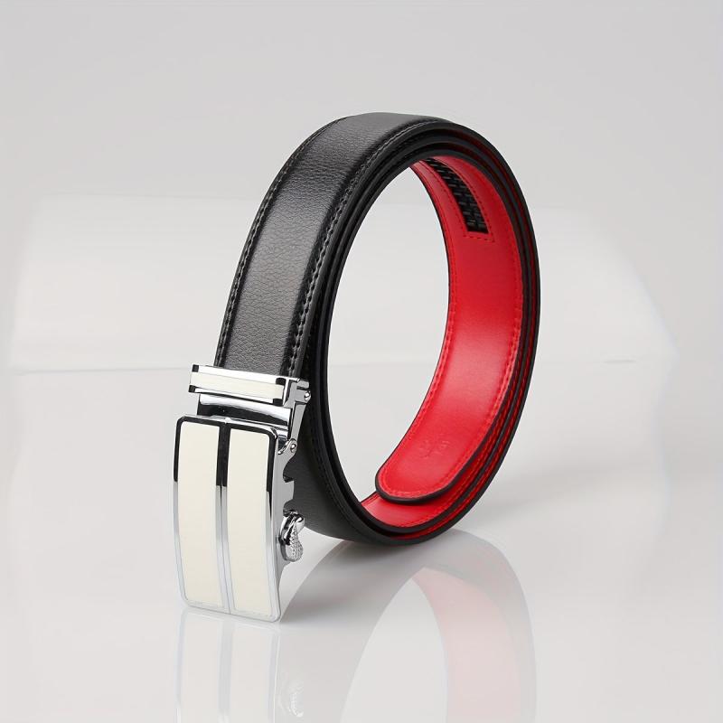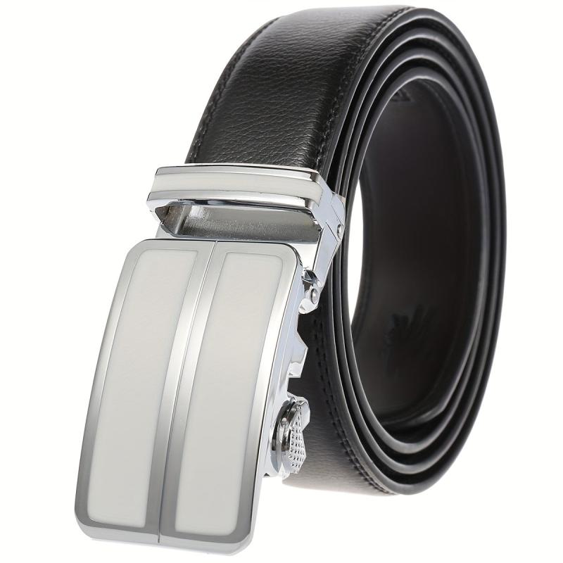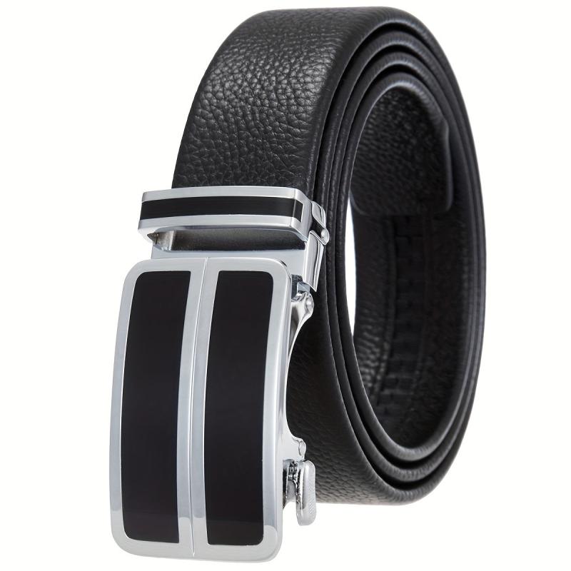 Men's Auto Buckle Business Belt - Black with Silver Buckle