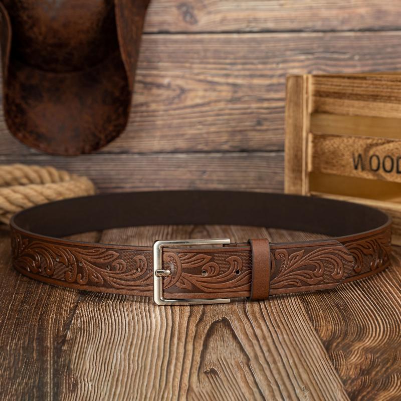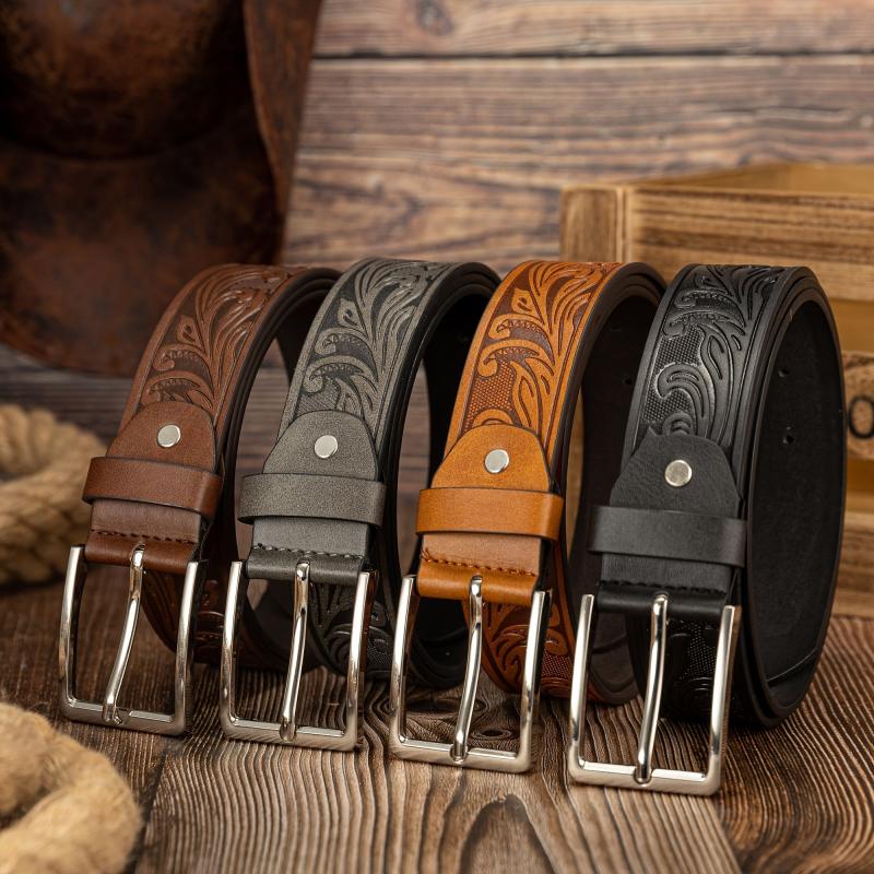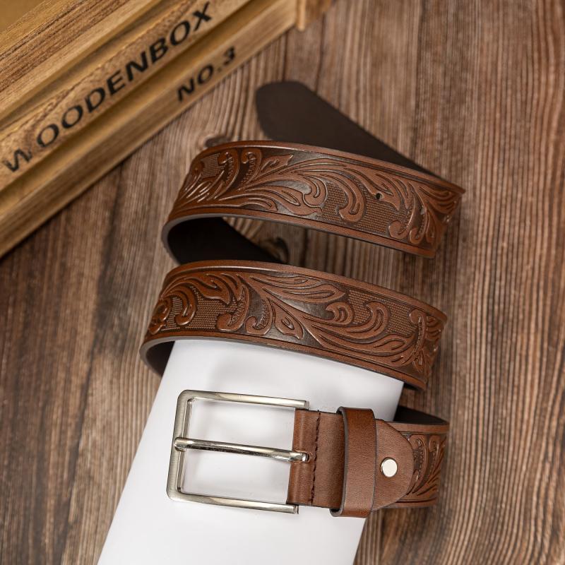 Stay stylish with this fashionable belt featuring carved patterns. Made of PU leather with an alloy buckle, this belt is perfect for casual wear.