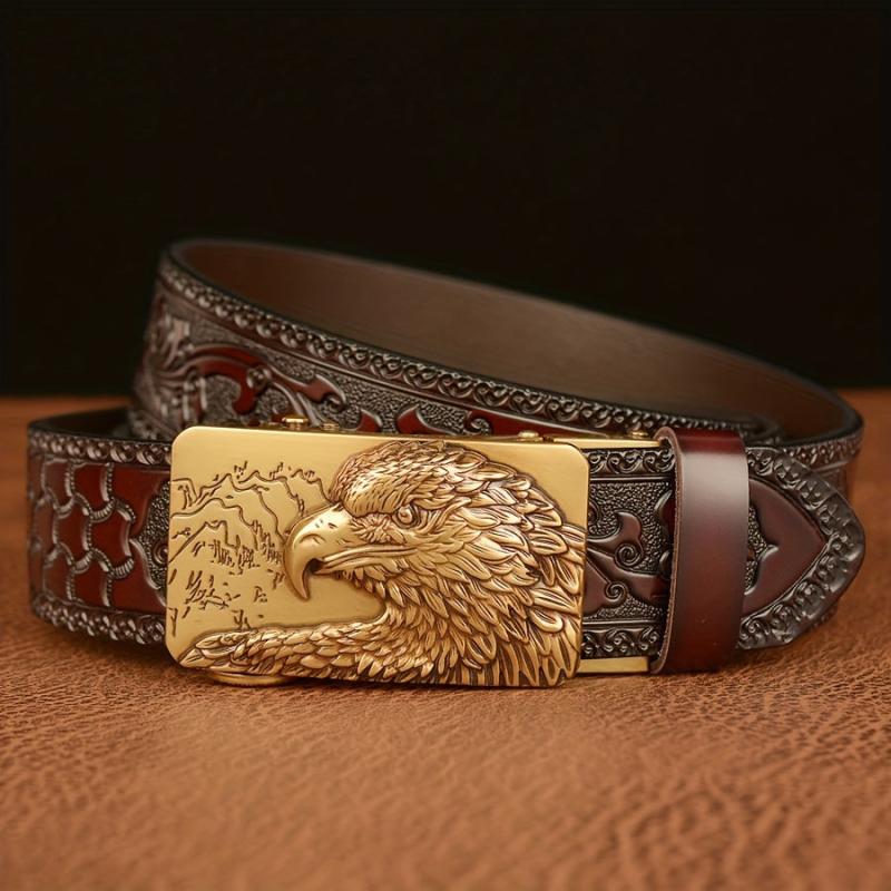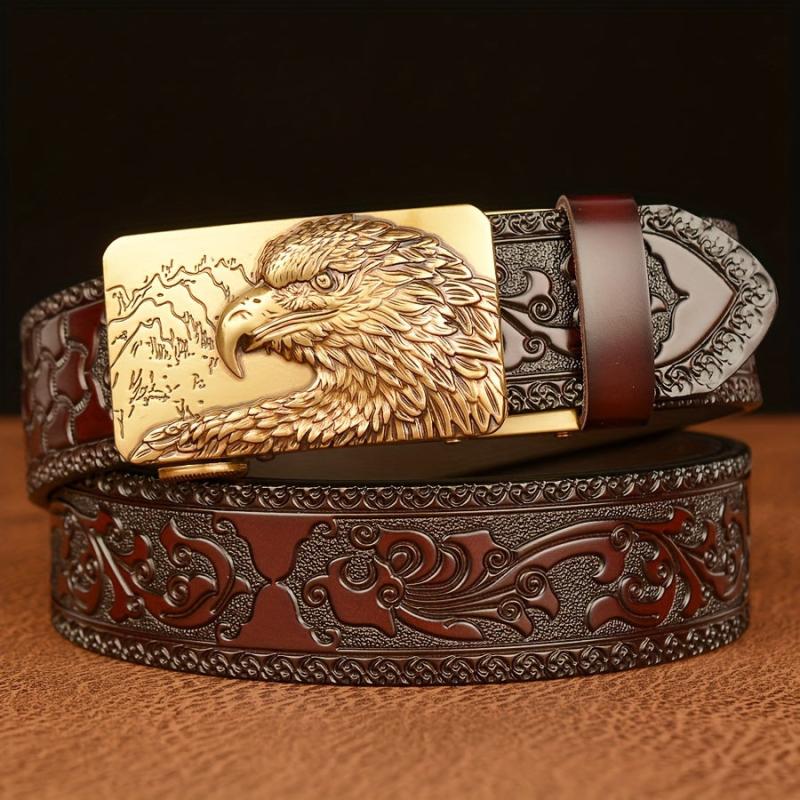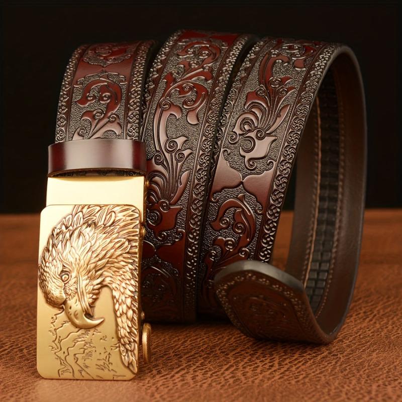 This men's belt is made of high-quality faux leather and features an automatic buckle. It is a perfect gift for your husband or dad.