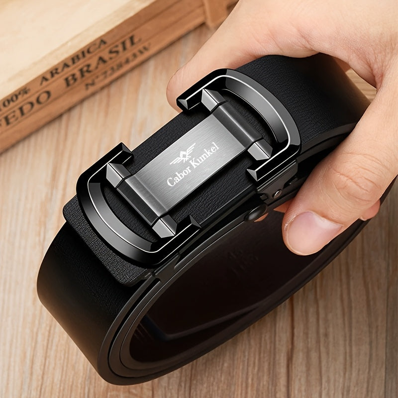 Upgrade your style with this classic men's belt featuring an alloy automatic buckle and high-quality artificial cowhide Faux Leather. Perfect for everyday casual wear or as a thoughtful Christmas gift.