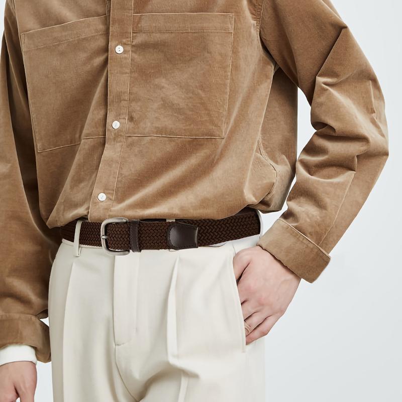 Upgrade your belt game with these large elastic stretch belts designed for men. The embossed iron buckle adds a stylish touch to your outfit. Available in coffee and navy options.