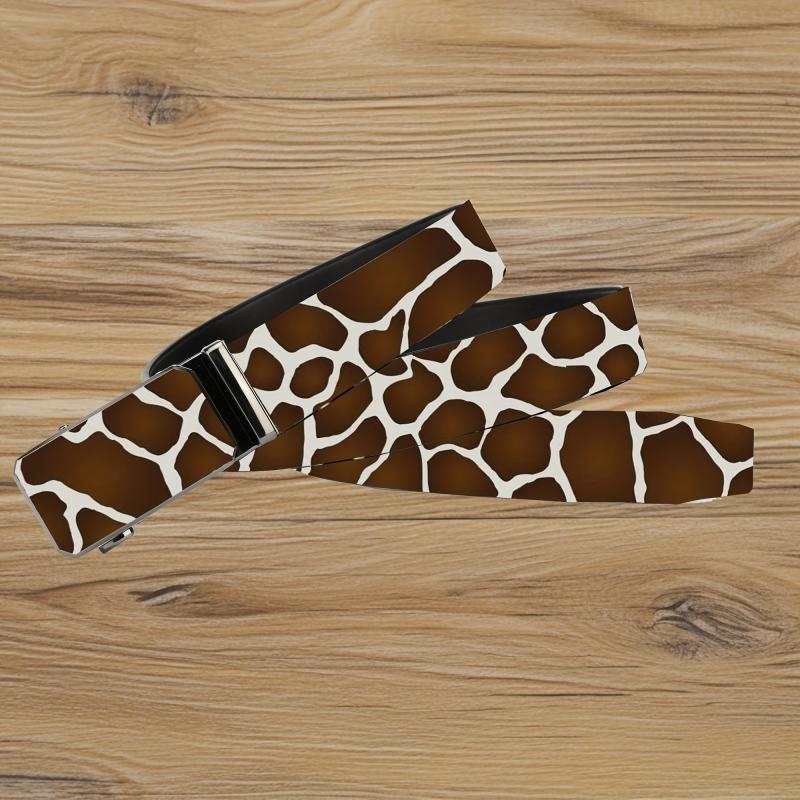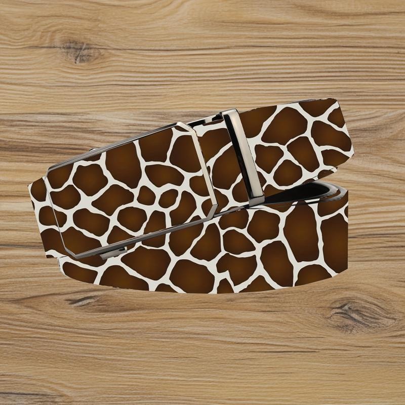 Elevate your style with this fashionable giraffe print belt. Made of durable faux leather, it's perfect for casual and business attire.