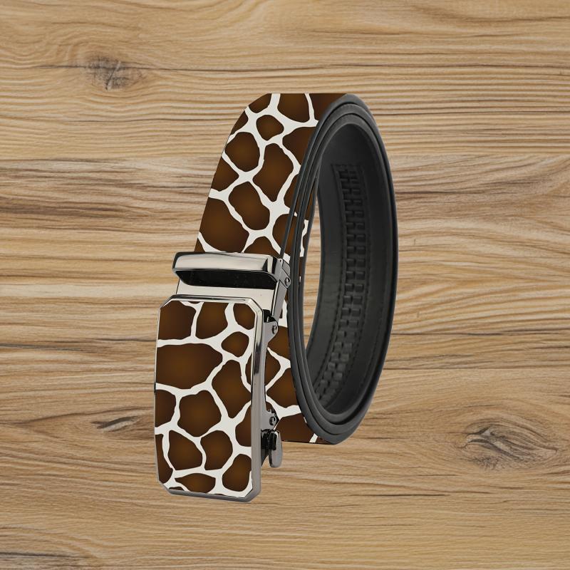 Men's Giraffe Print Automatic Buckle Belt Brown & Pattern Faux Leather