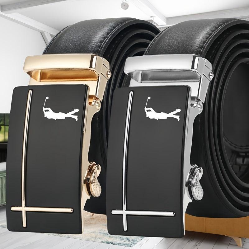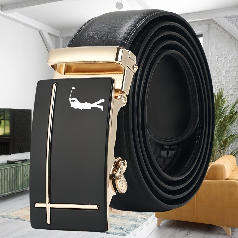 This men's belt features a golf pattern design making it a stylish accessory for everyday wear. The automatic buckle provides convenience and the faux leather material ensures durability.
