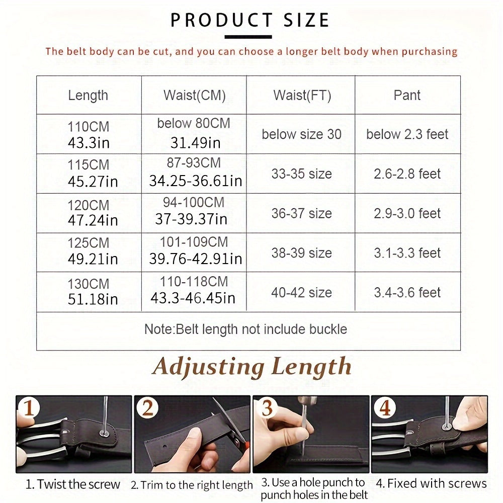 This classic men's leather belt is suitable for formal and casual wear. Made from high-quality cowhide material, it is perfect for work or everyday use. Comes with a puncher for easy adjustments.