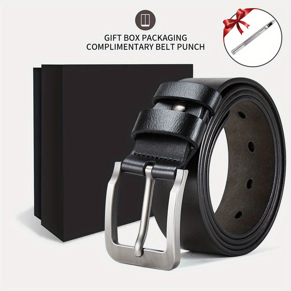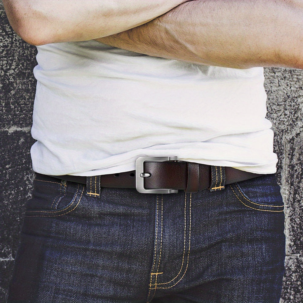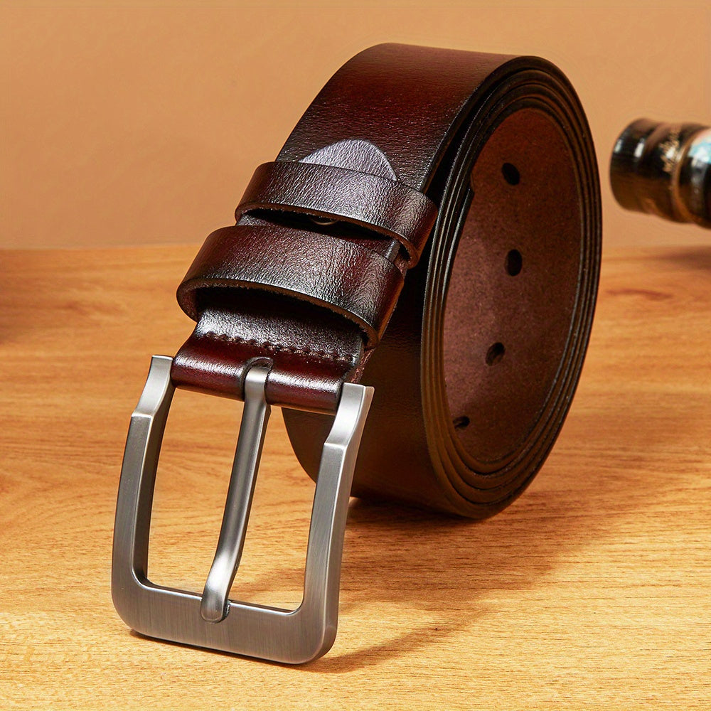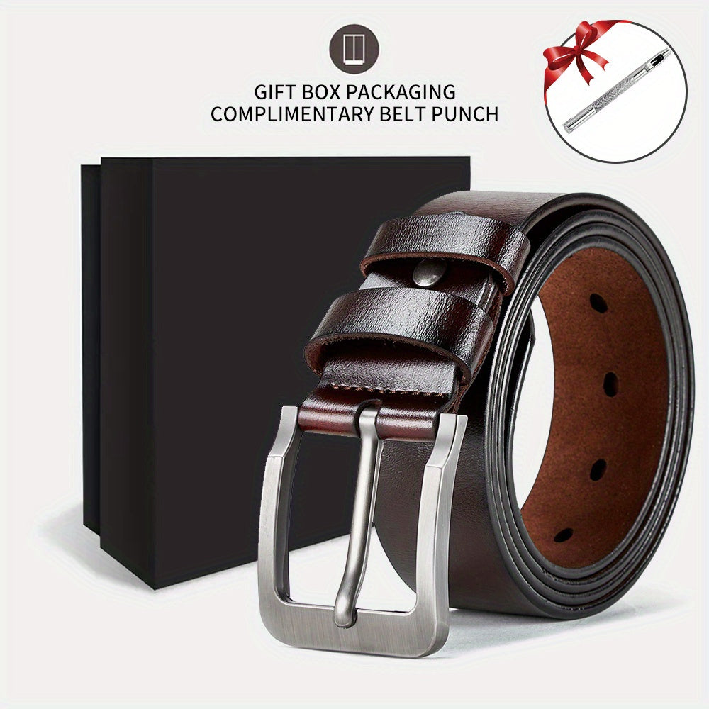 Men's Leather Belt Cowhide Buckle for Western Pants Jeans