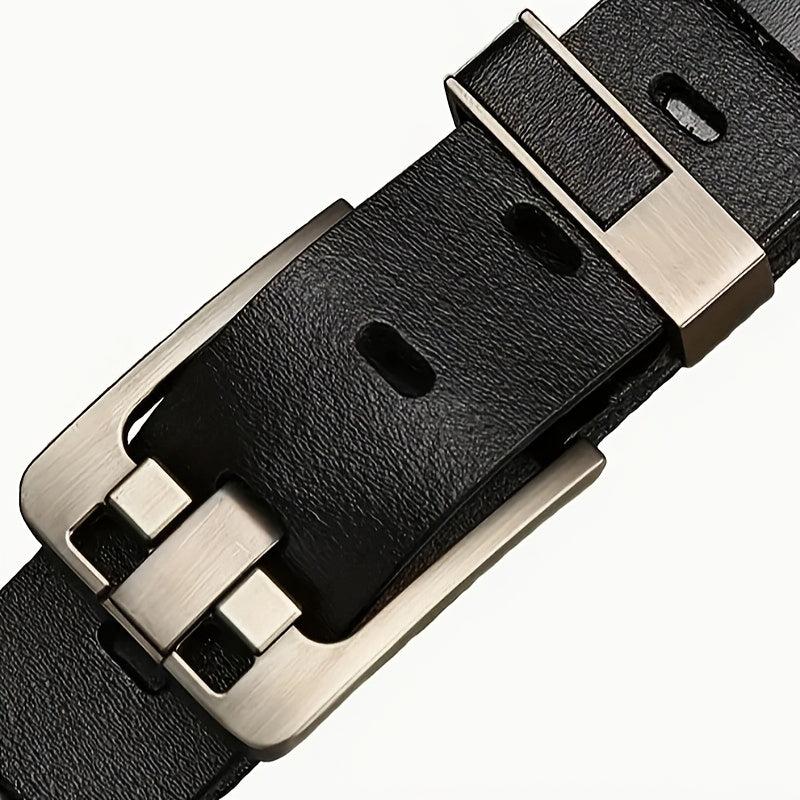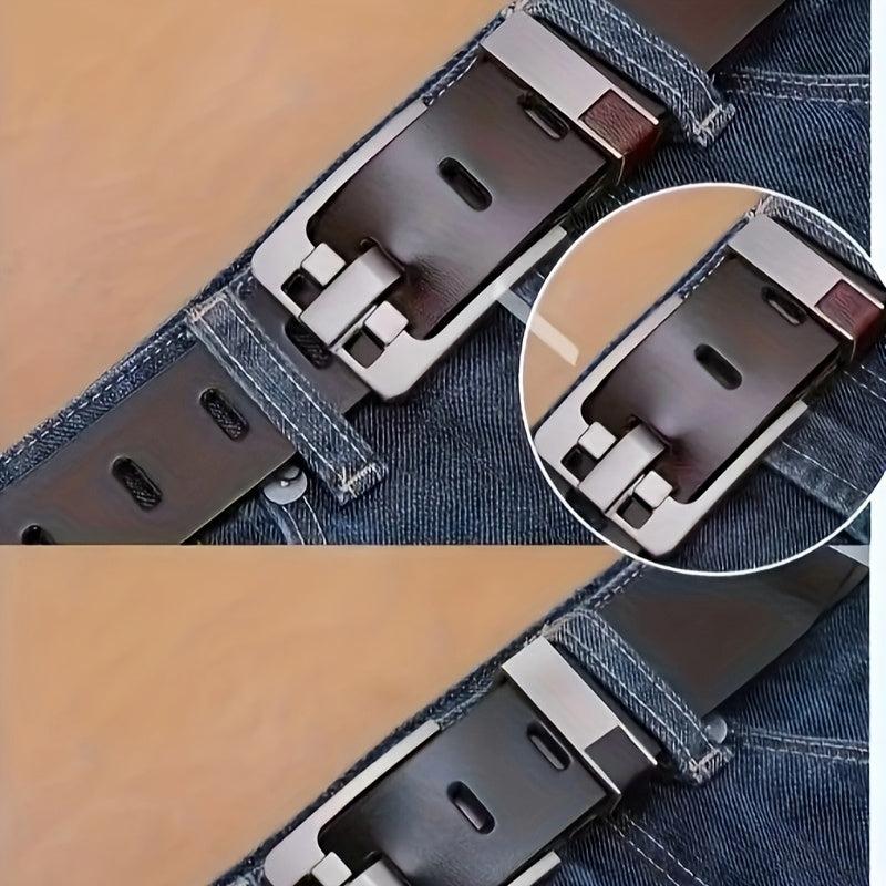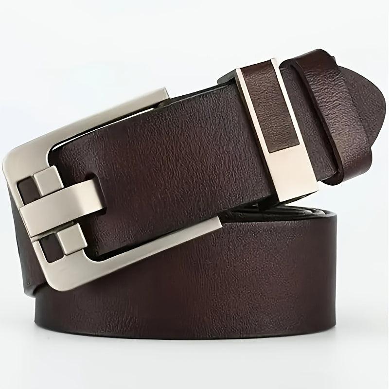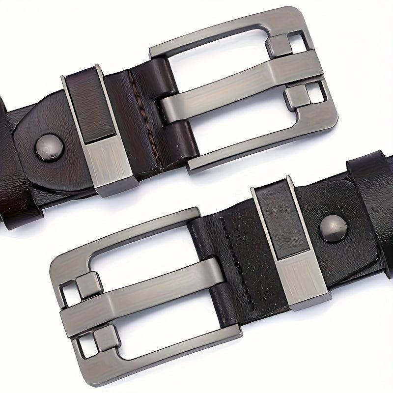 Men's Leather Belt with Square Alloy Buckle for Casual Jeans