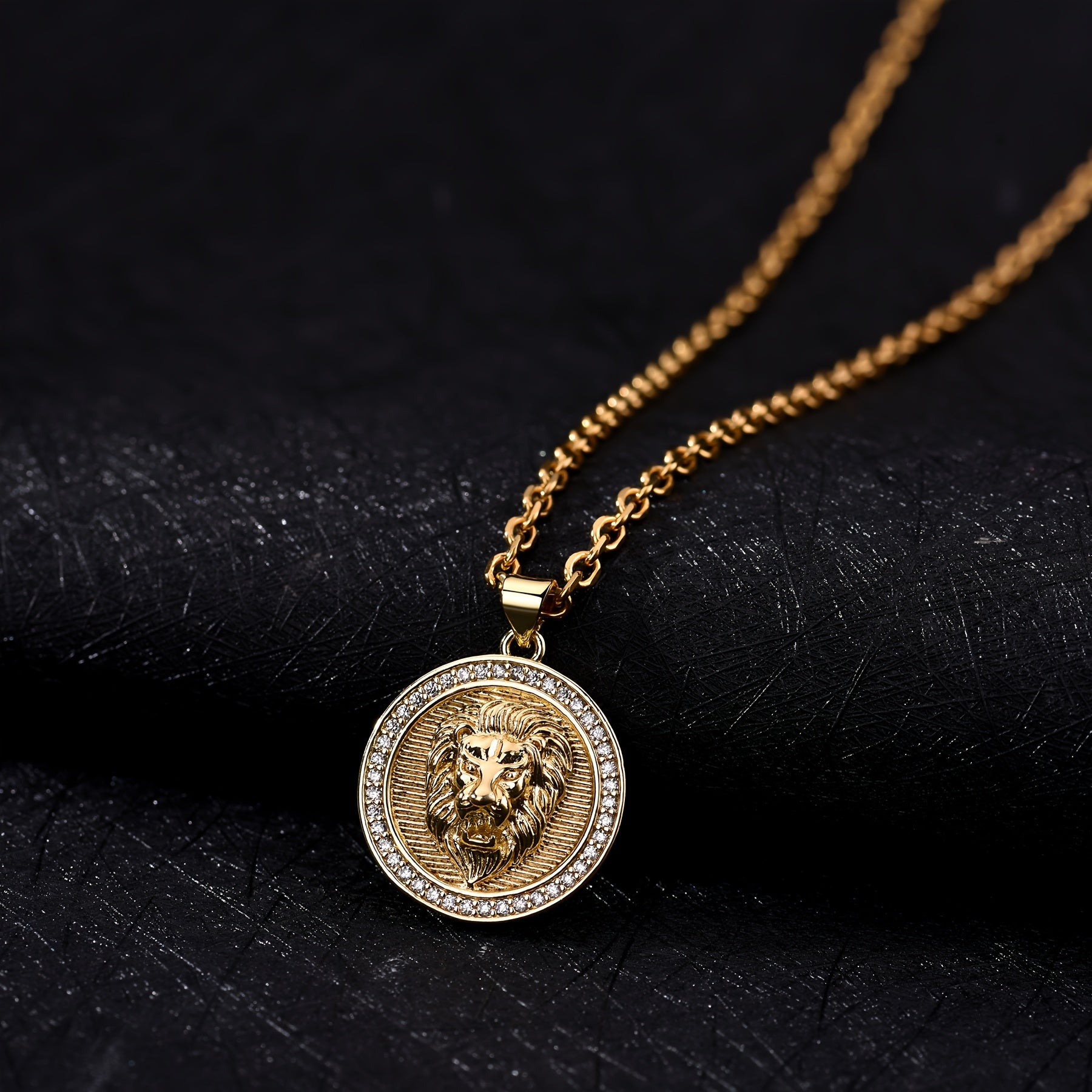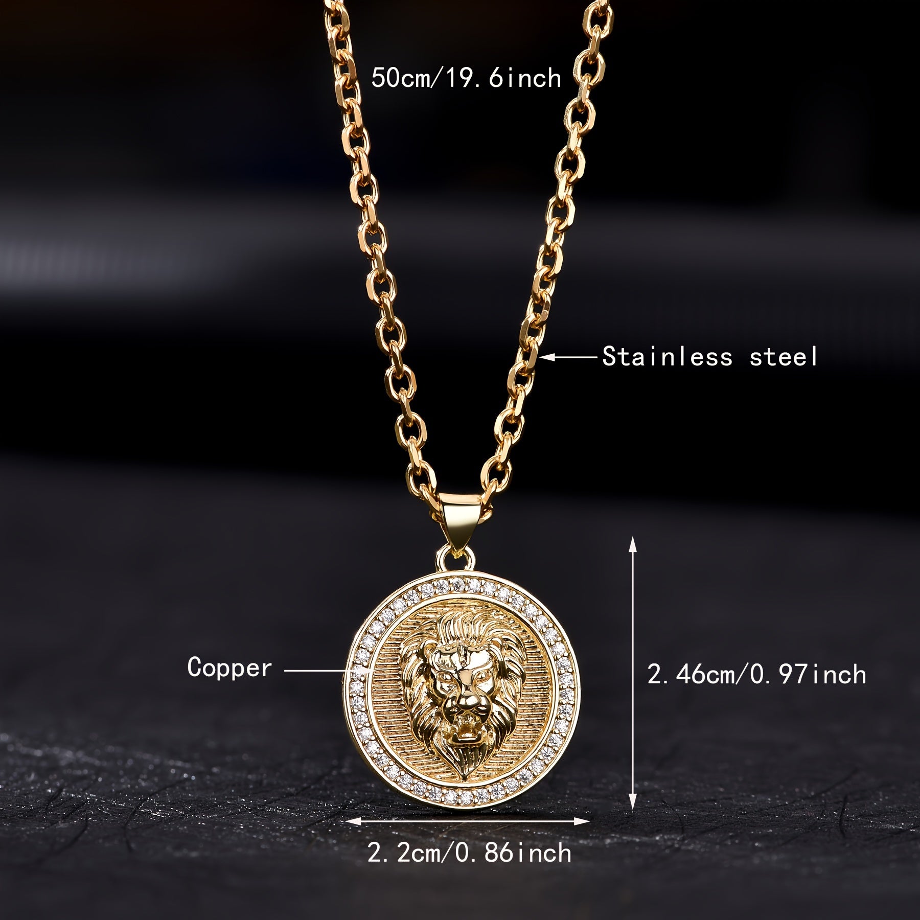 This pendant necklace features a glamorous lion head design made of 316L stainless steel adorned with synthetic zirconia. Perfect for casual wear or as a gift for a loved one.
