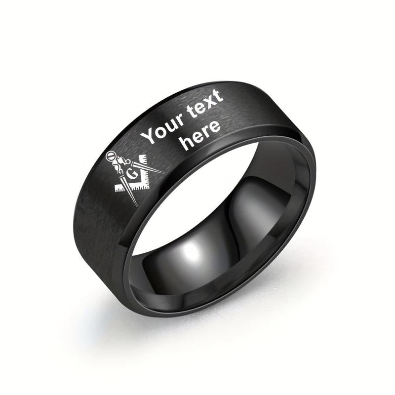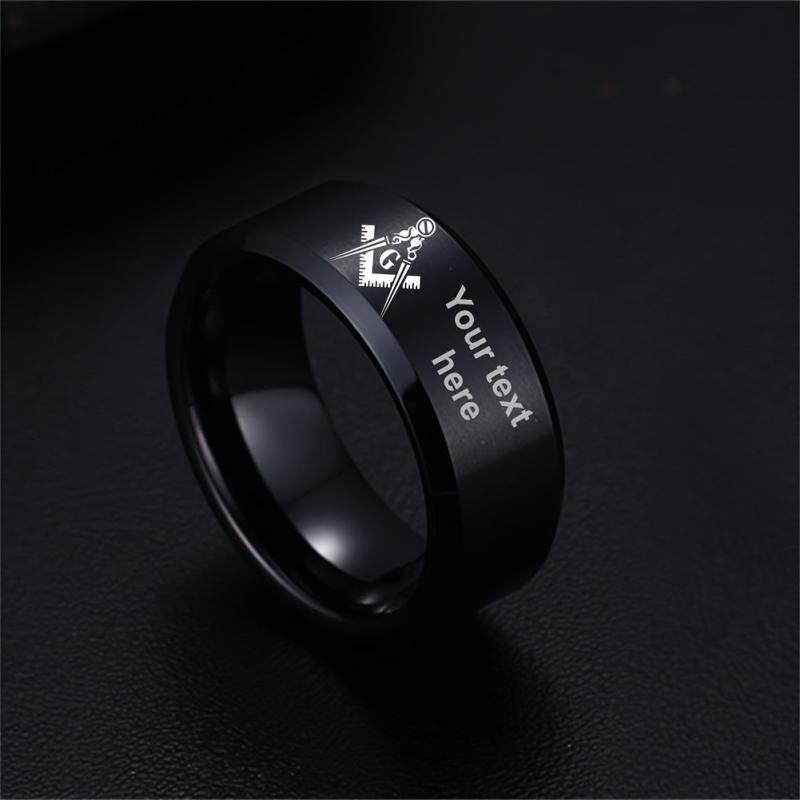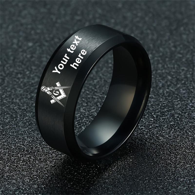 Men's Masonic Stainless Steel Ring Custom Name Freemasons Jewelry